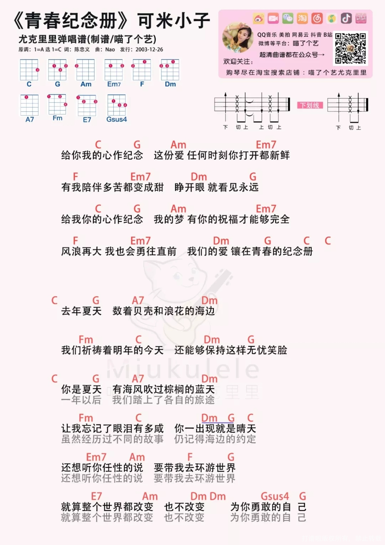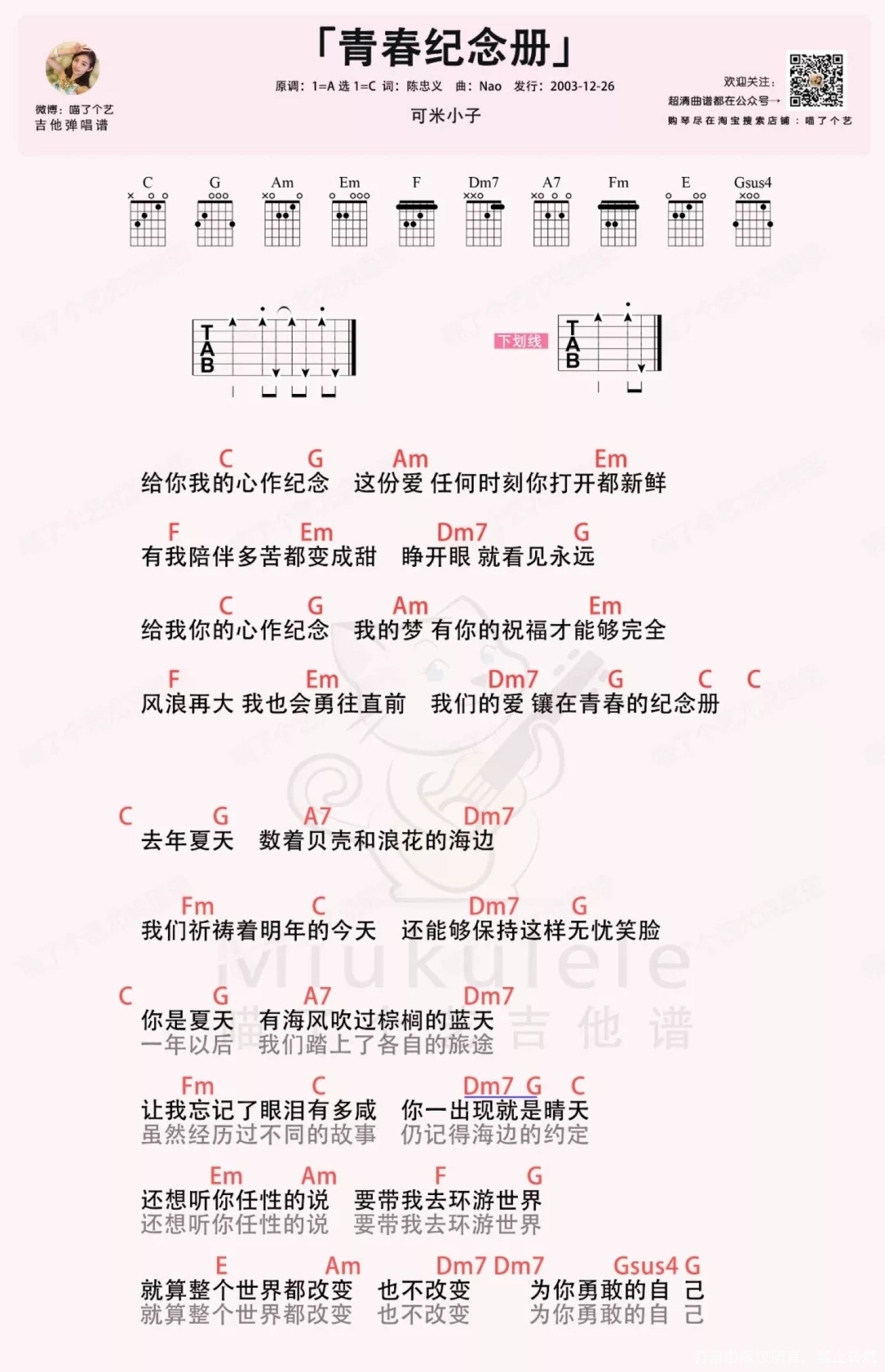 青春纪念册尤克里里谱