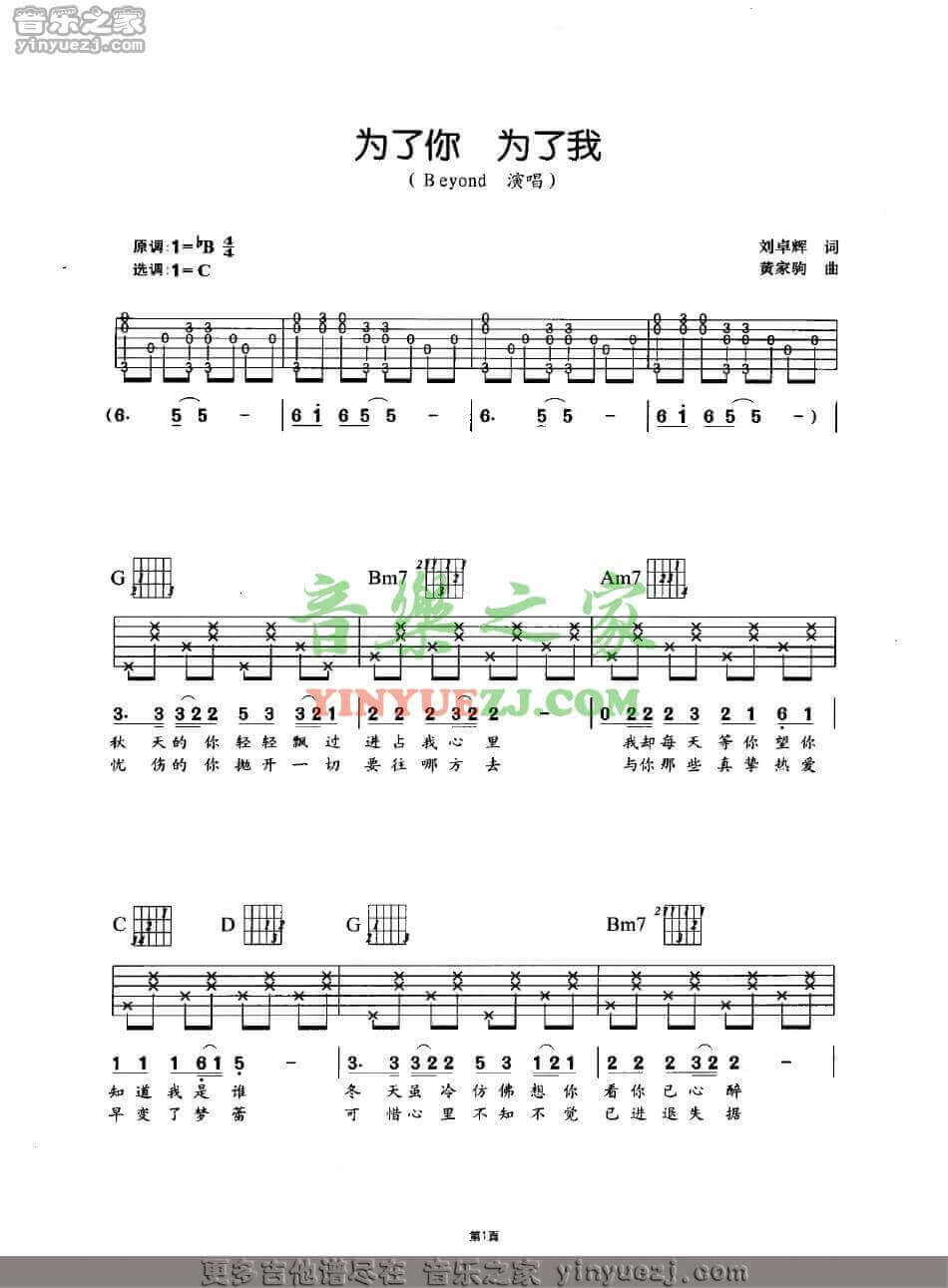 为了你为了我吉他谱 - Beyond - C调吉他弹唱谱