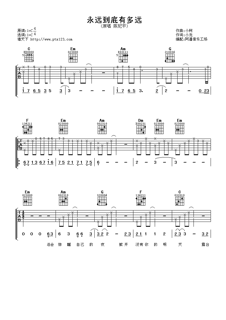 永远到底有多远吉他谱 - 陈妃平 - C调吉他弹唱谱