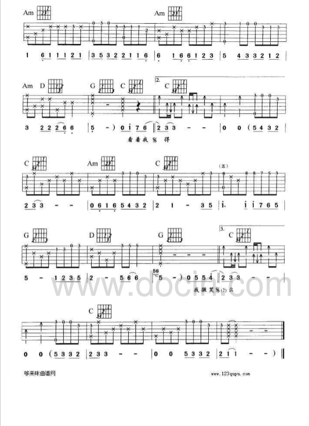 曲谱介绍: 爱不离知道不采用了C调指法,由豆丁编配完成。这首歌曲俘获了很多人的心。重要提示:属于吉他谱更新啦,学完这首后,顺便把下首学了吧。