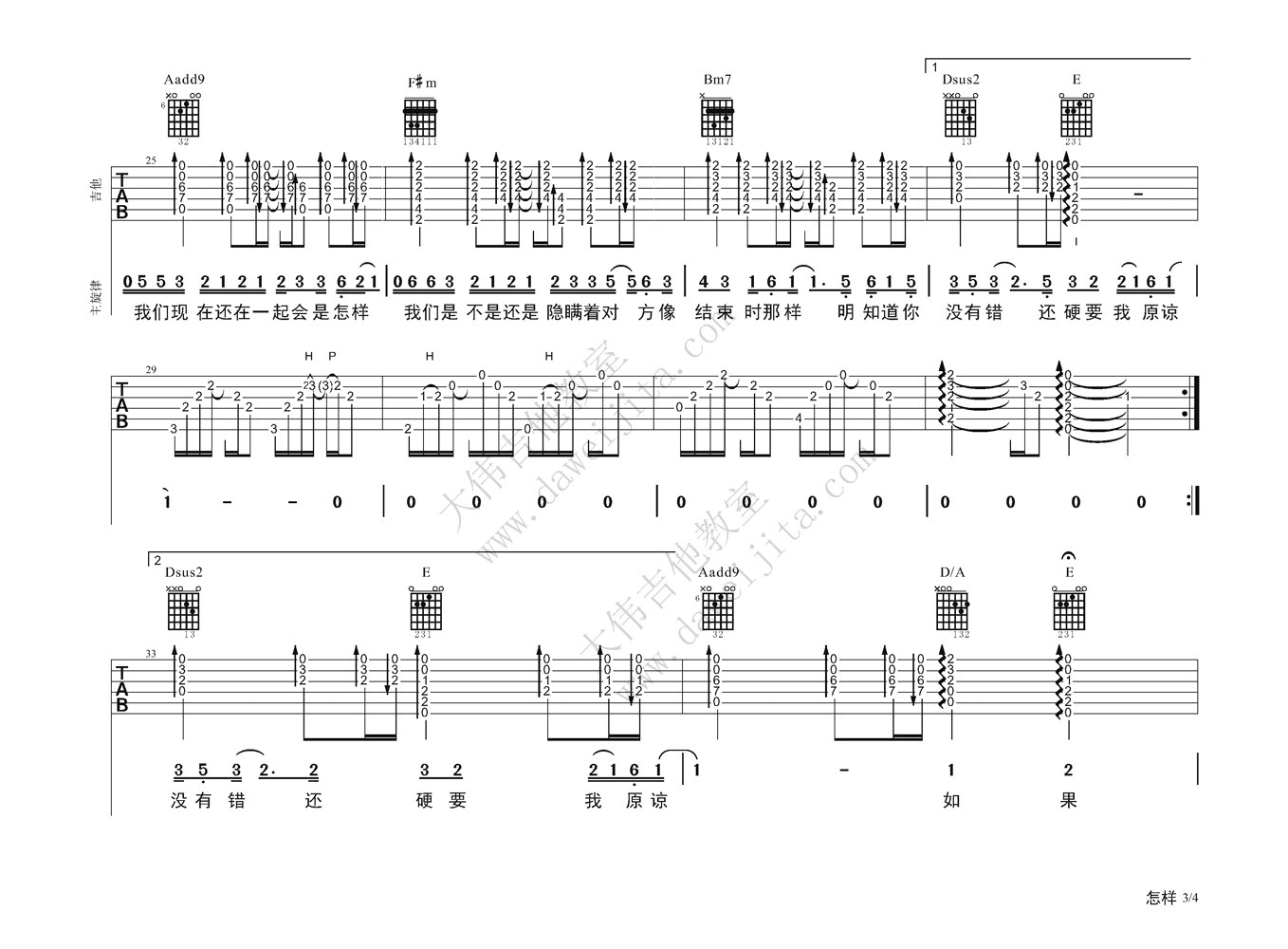 怎样吉他谱 - 戴佩妮 - A调吉他弹唱谱