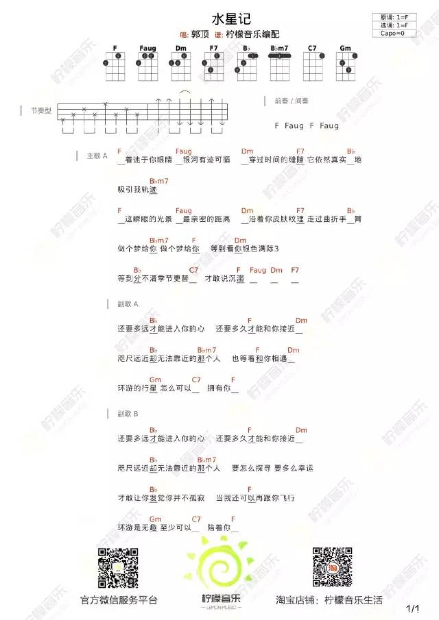 当前位置:琴谱网>尤克里里>水星记