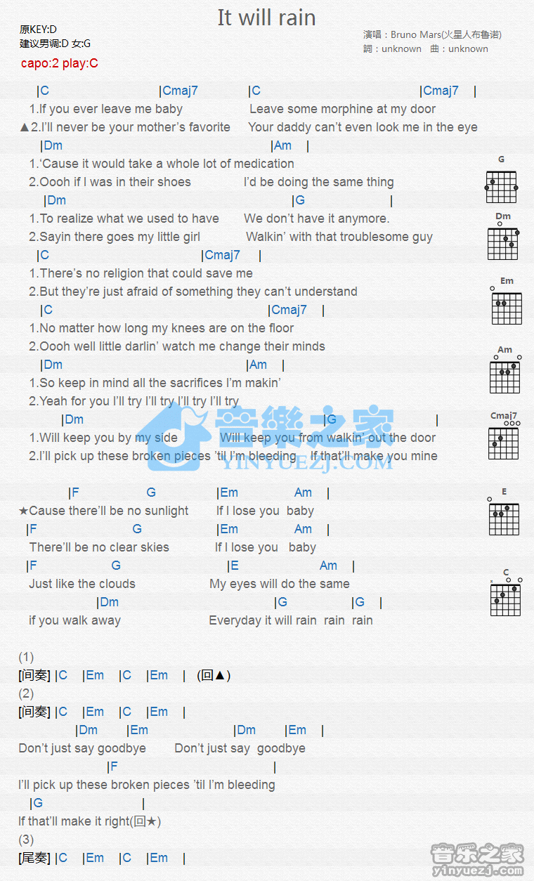 it will rain吉他谱 - it - C调吉他弹唱谱