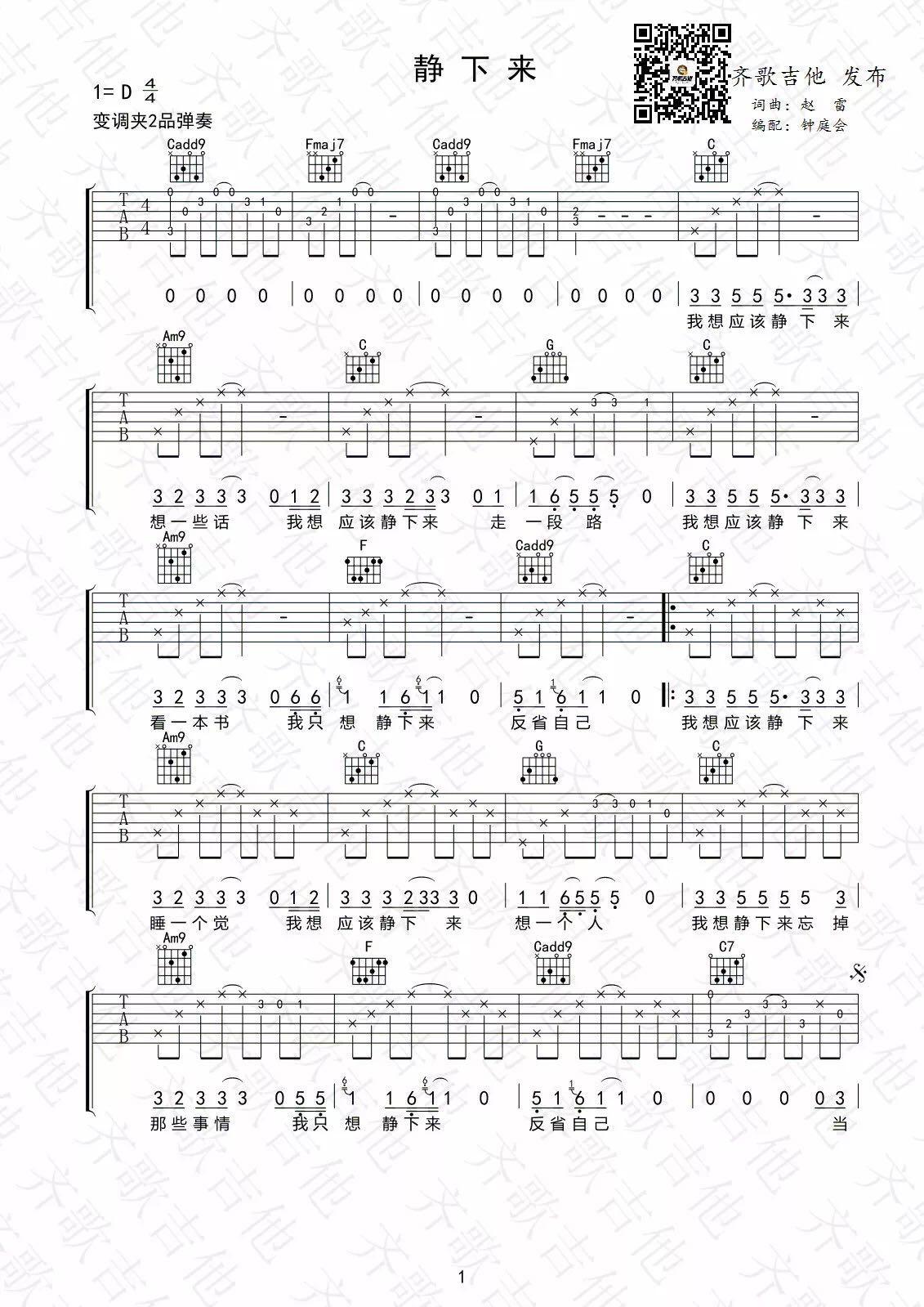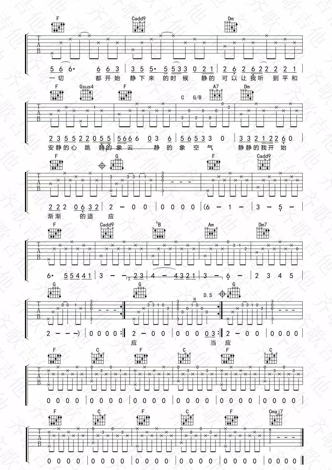 当前位置:琴谱网>吉他弹唱>静下来