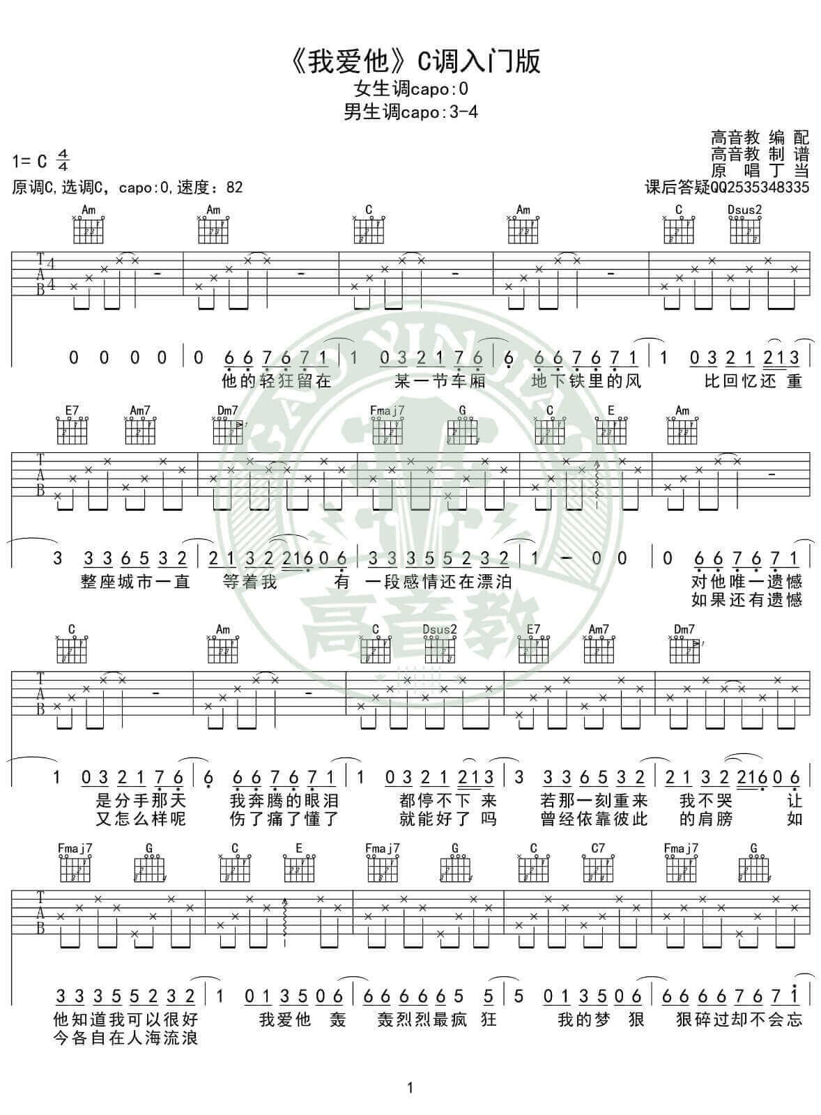 我爱他吉他谱 - 丁当 - C调吉他弹唱谱