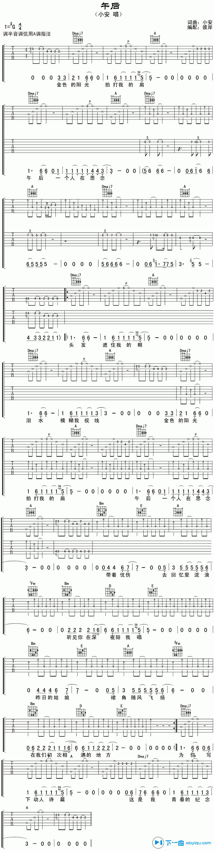 午后吉他谱 - 小安 - B调吉他弹唱谱
