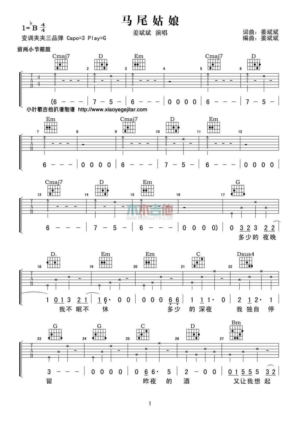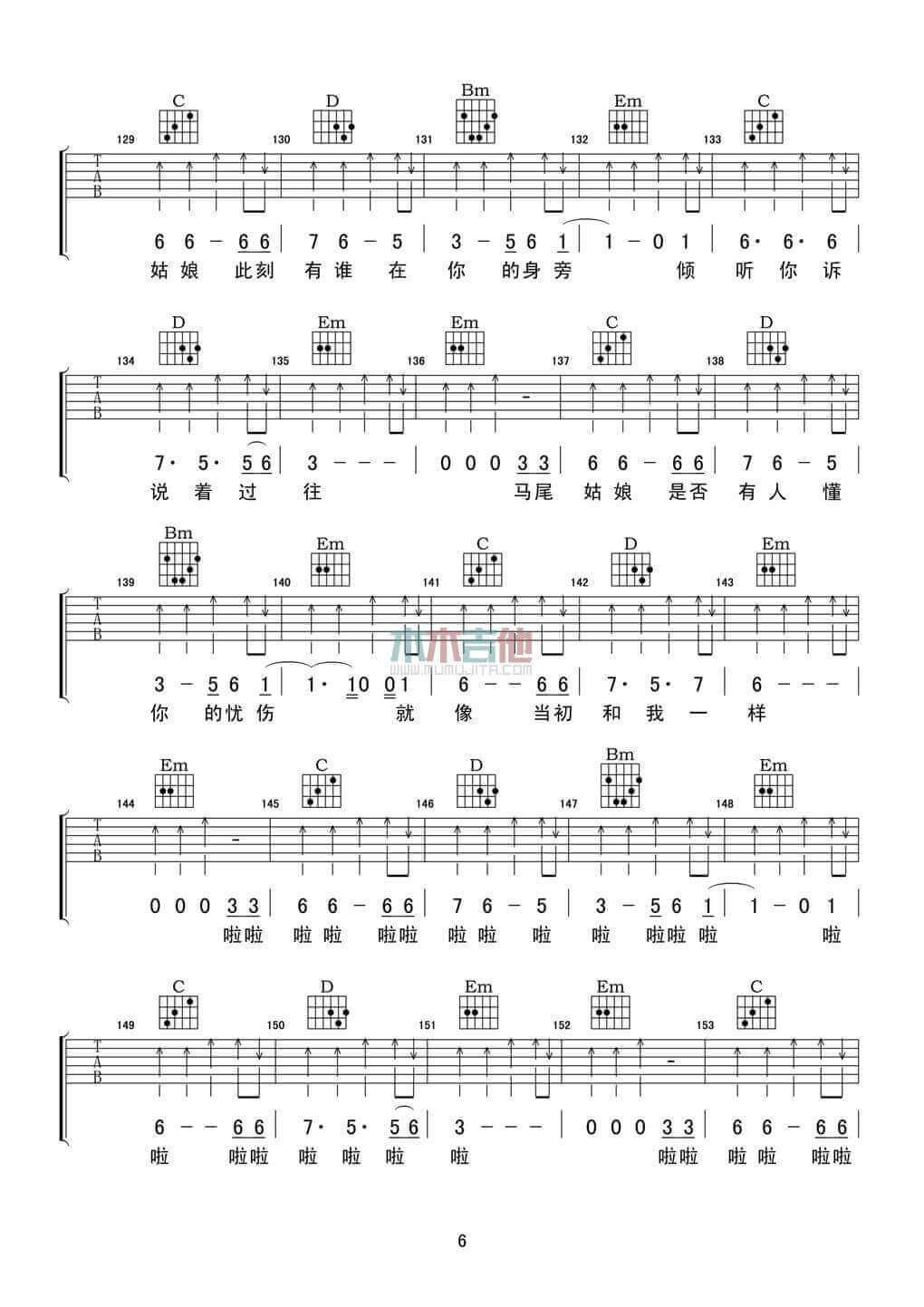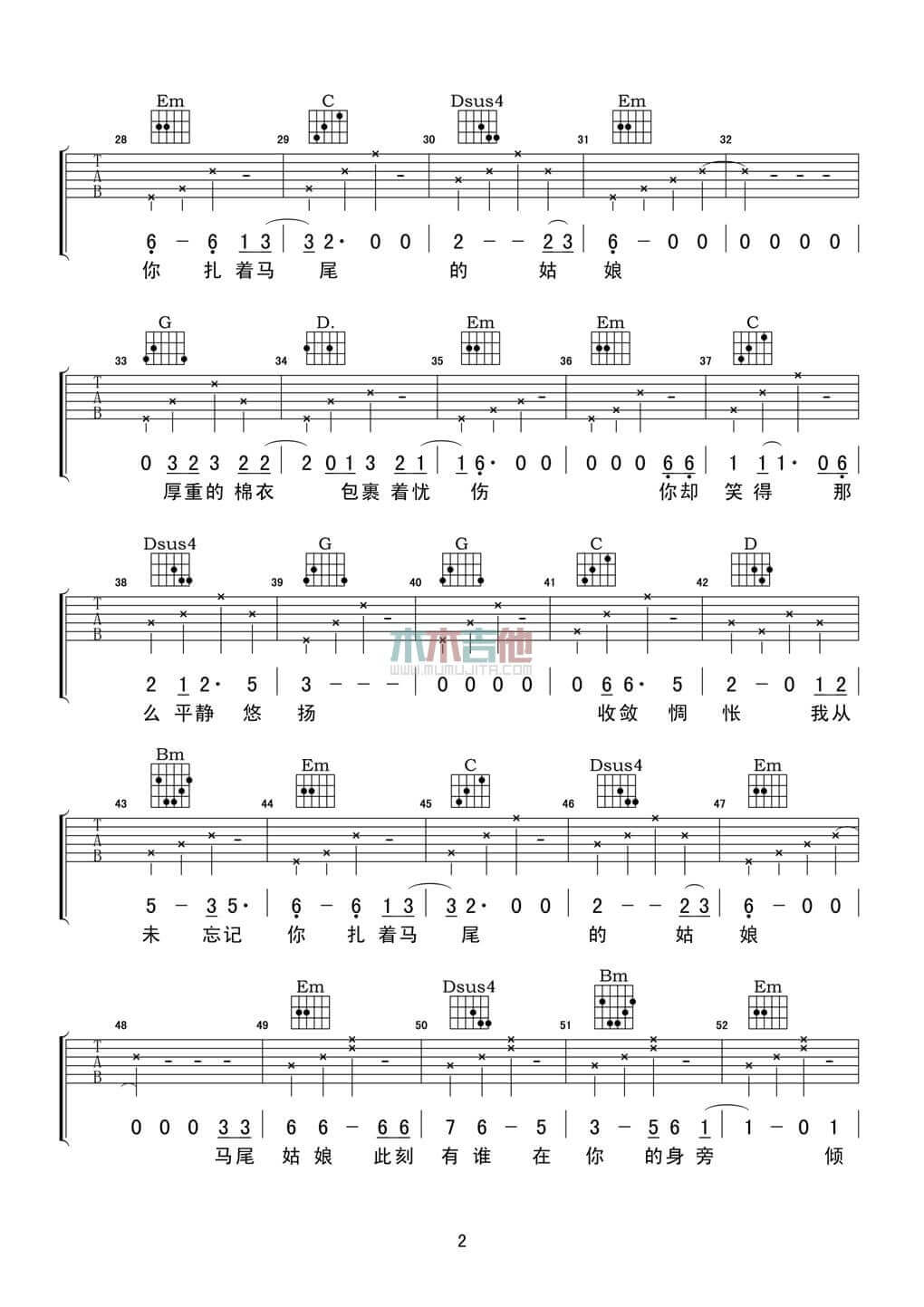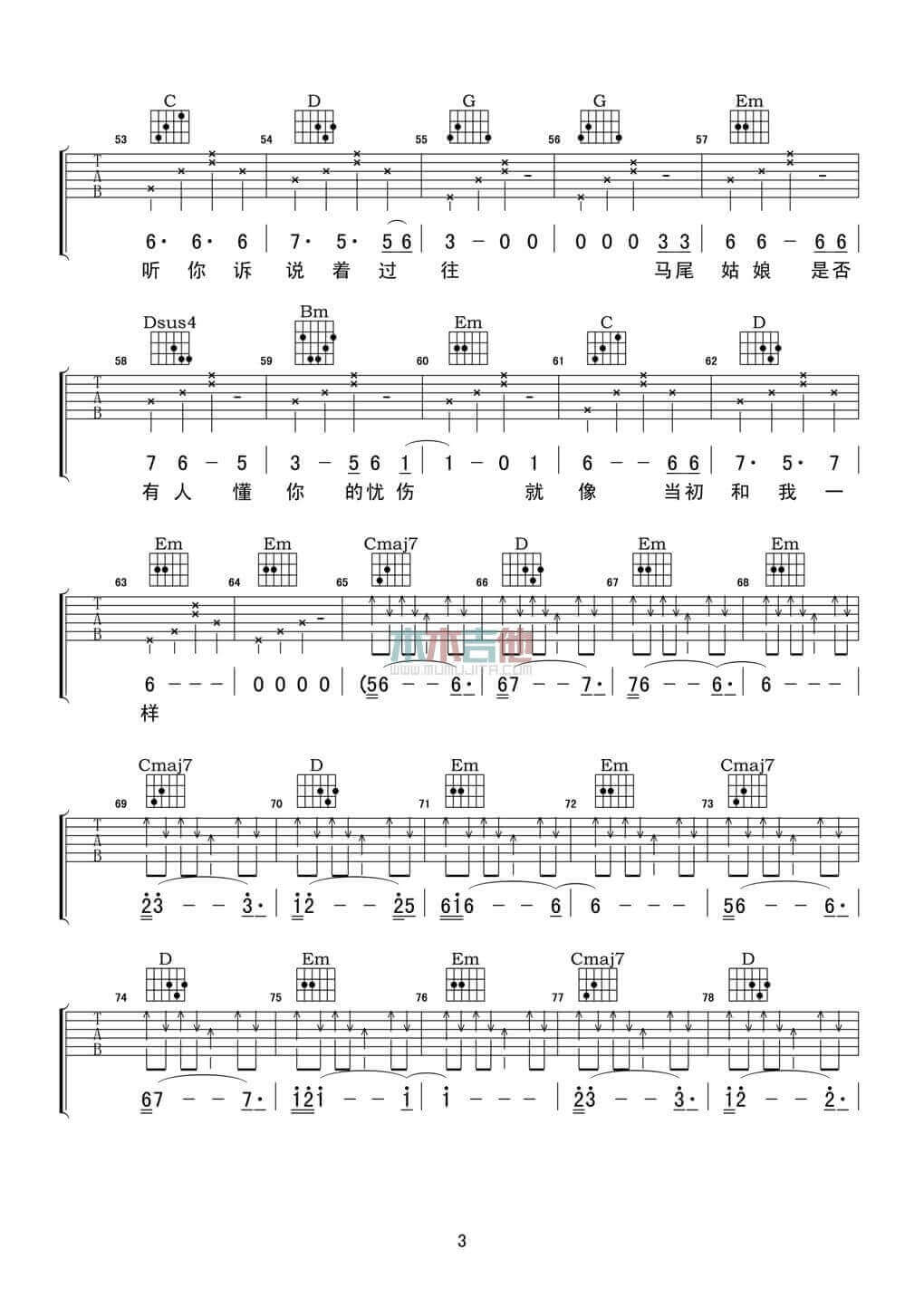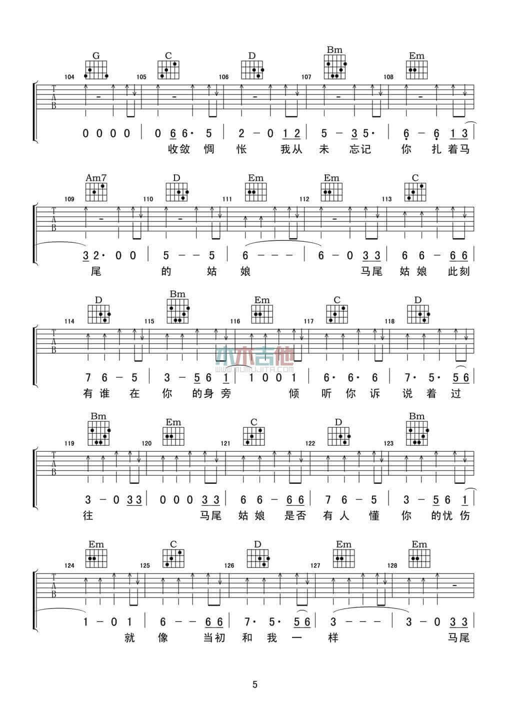 当前位置:琴谱网>吉他弹唱>马尾姑娘