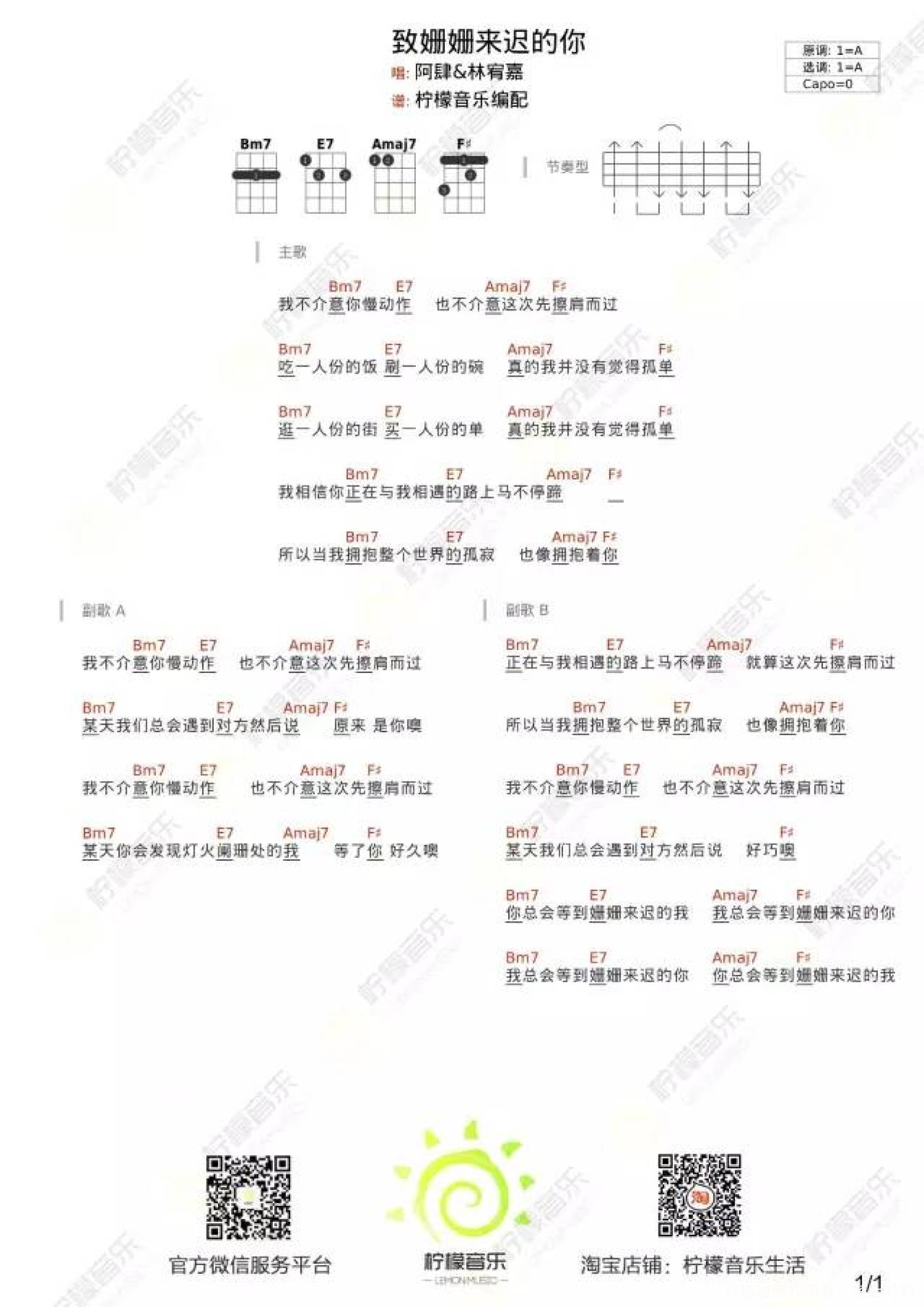 致姗姗来迟的你尤克里里谱