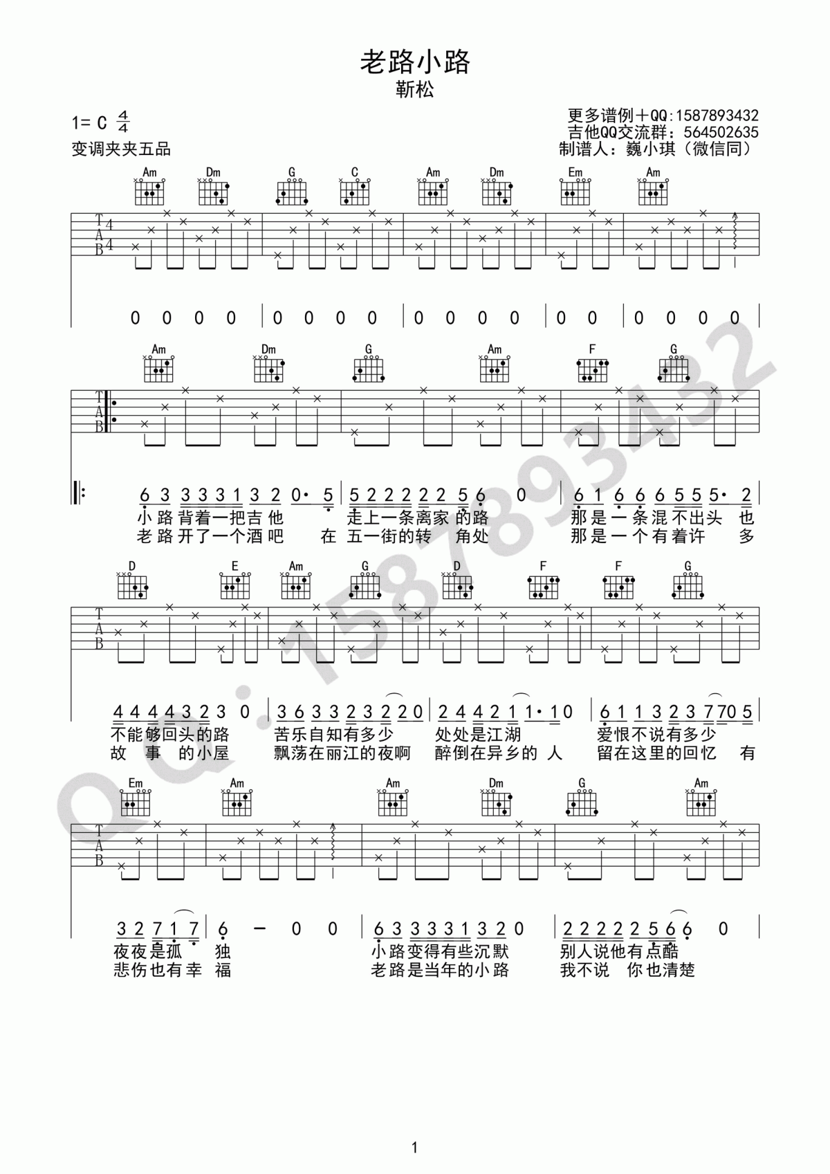 老路小路_吉他谱 - 老路小路 - 吉他弹唱谱