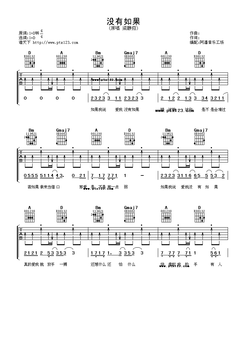 没有如果吉他谱 - 梁静茹 - D调吉他弹唱谱