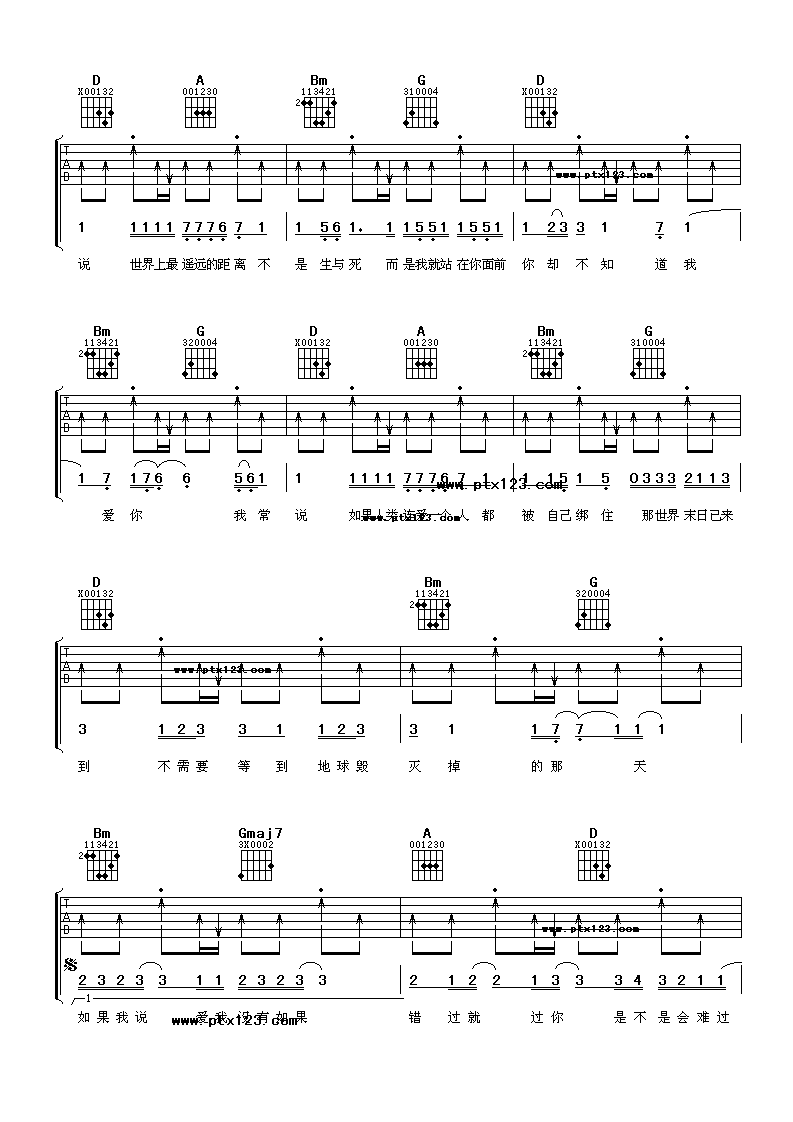 当前位置:琴谱网>吉他弹唱>没有如果