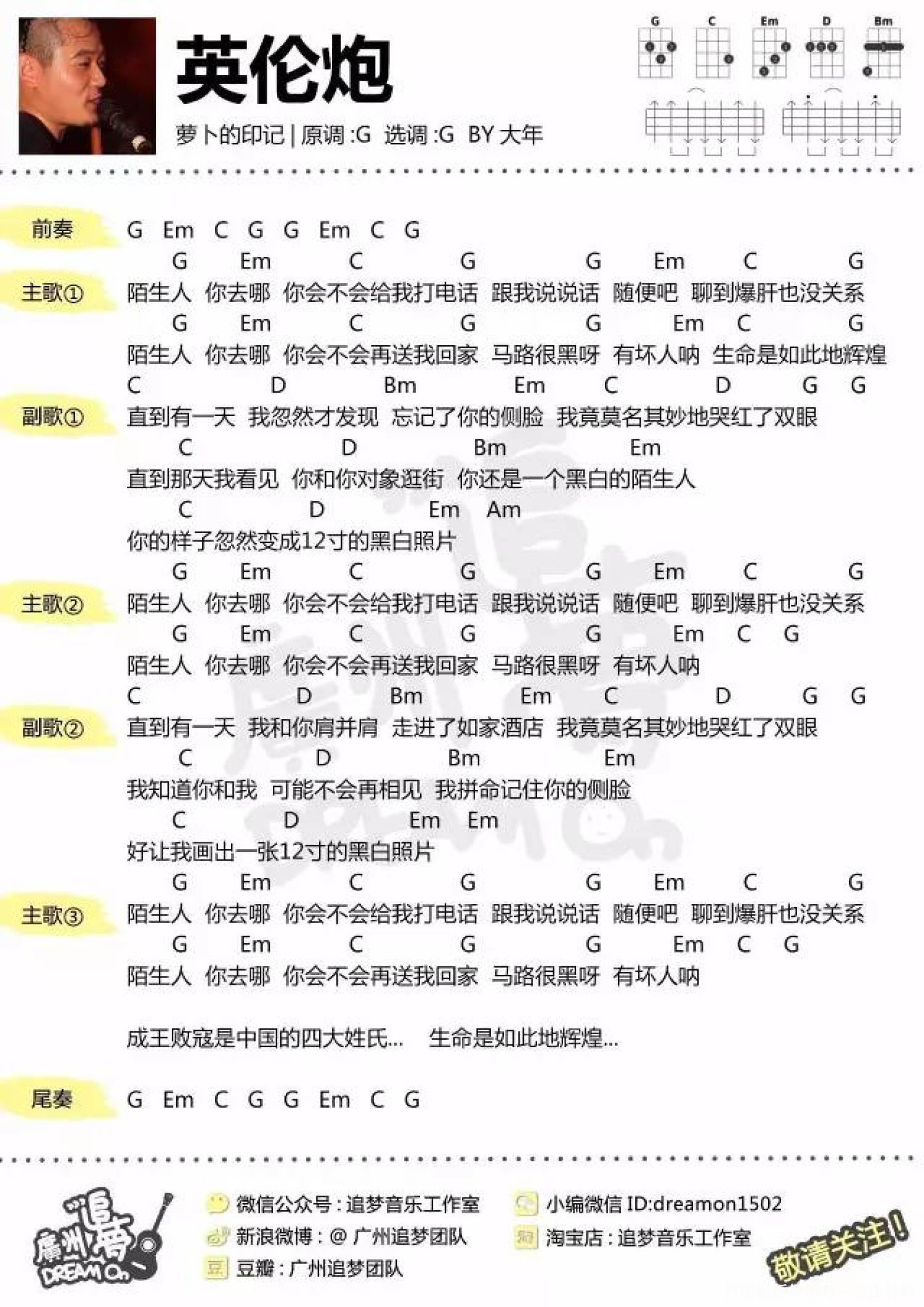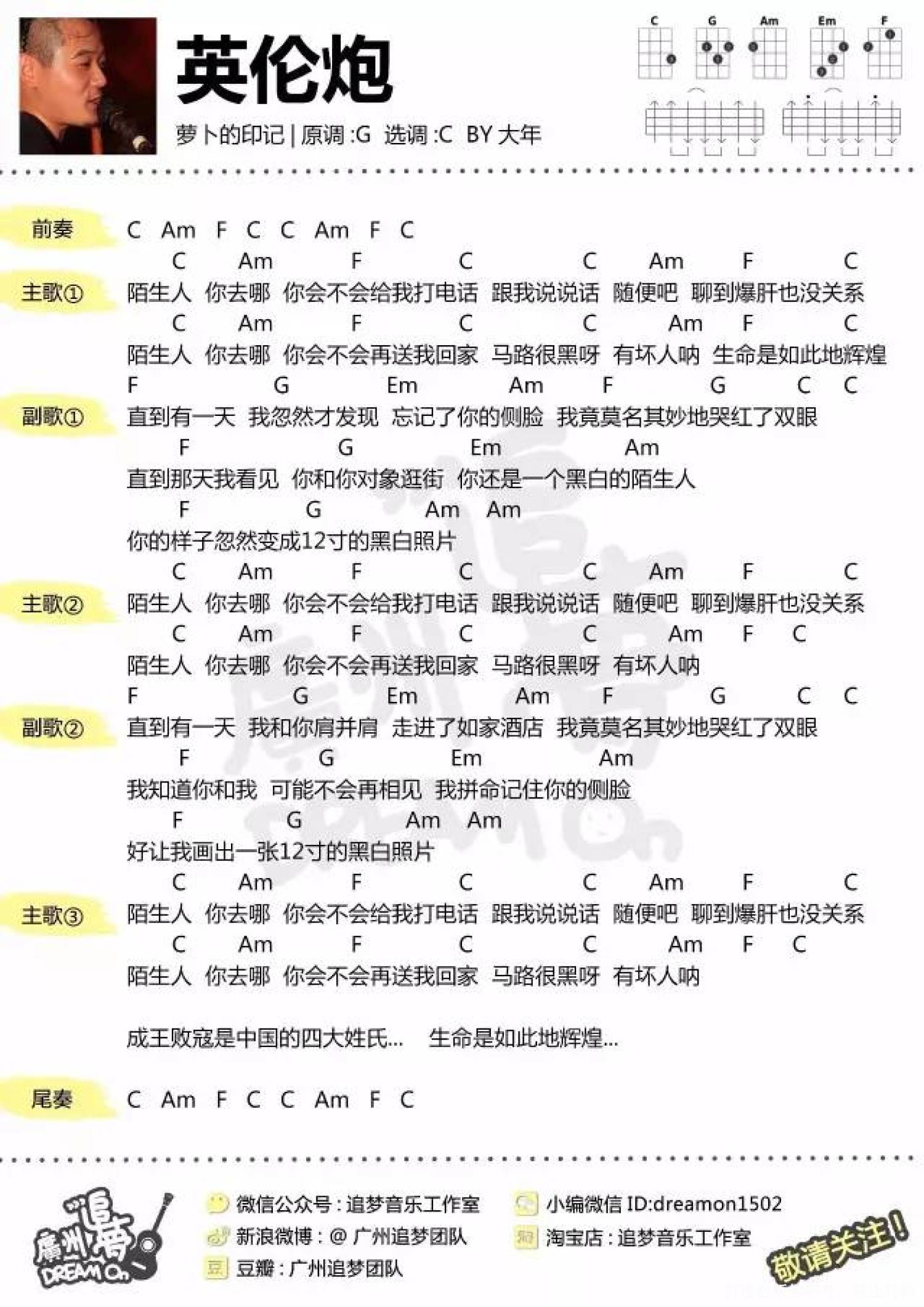 曲谱介绍: 英伦炮 | 萝卜的印记 天黑走夜道,天亮睡大觉,不问成败荣辱,只呻无病之吟! 尤克里里曲谱 女生谱 男生谱
