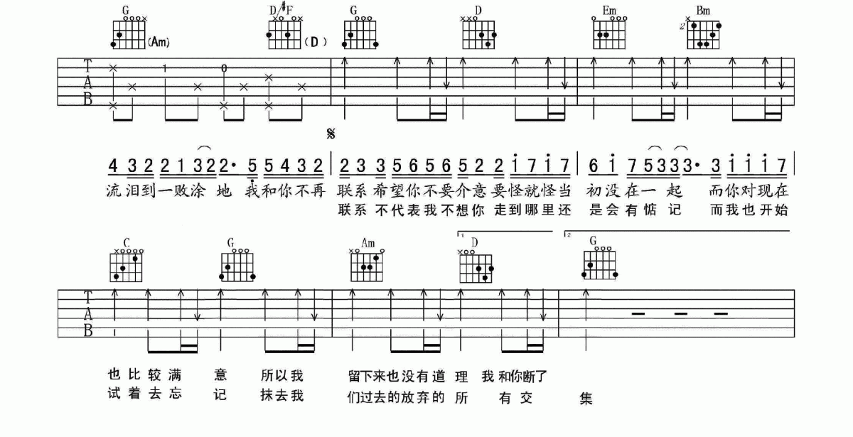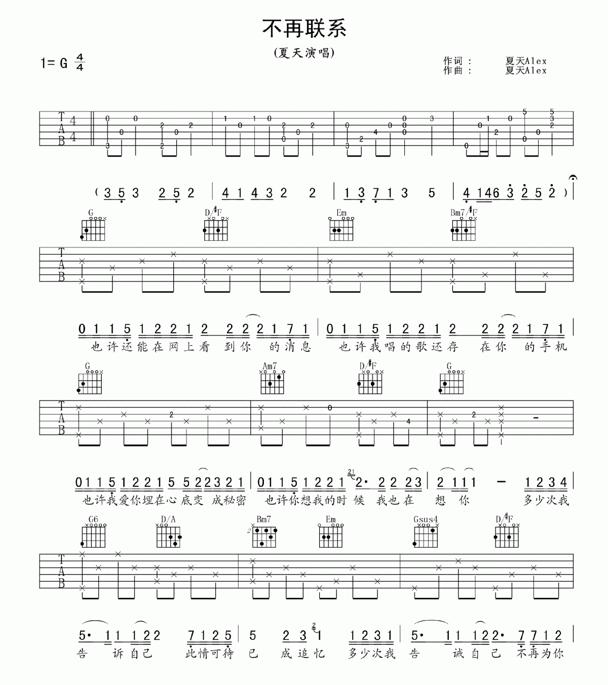 曲谱介绍: 夏天《夏天不再联系》吉他弹唱谱,共有2张高清图谱,免翻页排版设计。