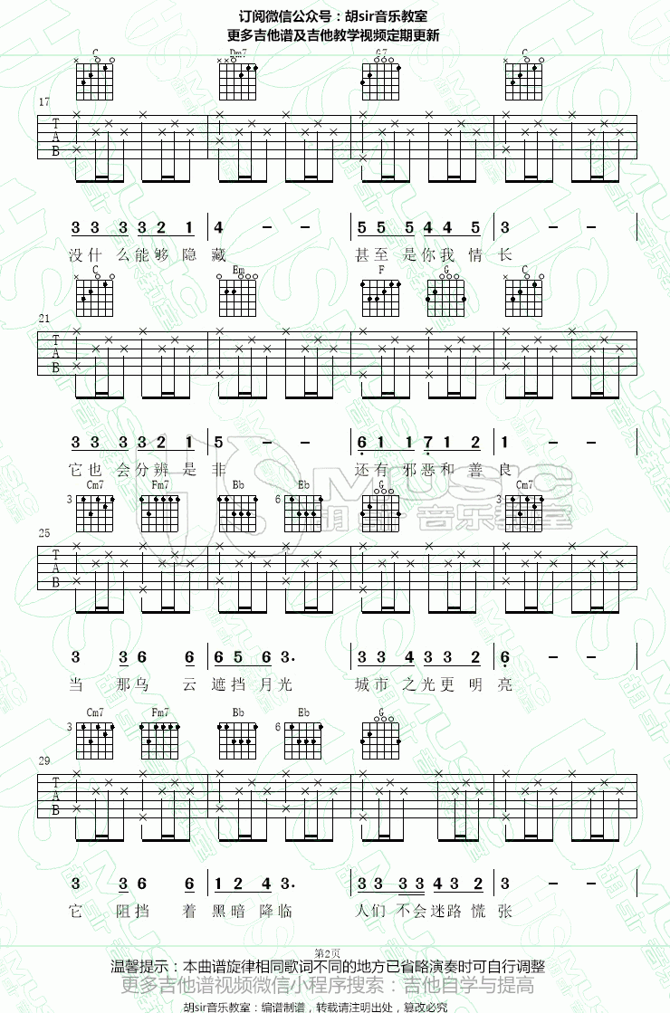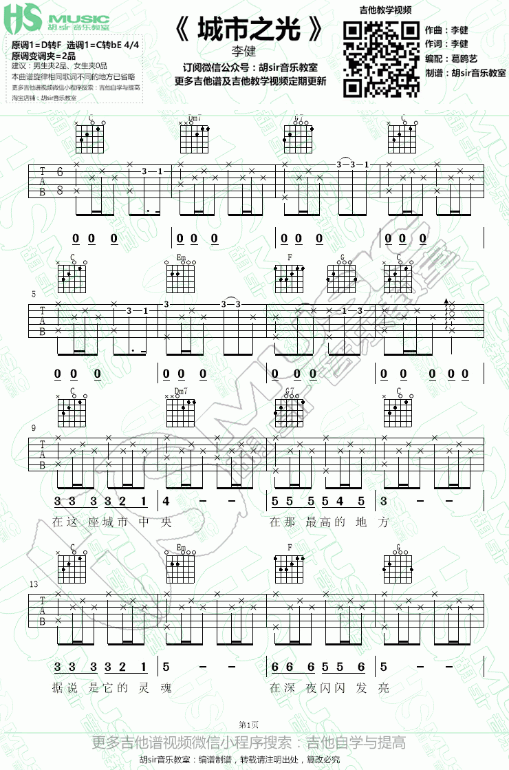 曲谱介绍: 电影《心理罪之城市之光》吉他弹唱谱,共有3张高清图谱。