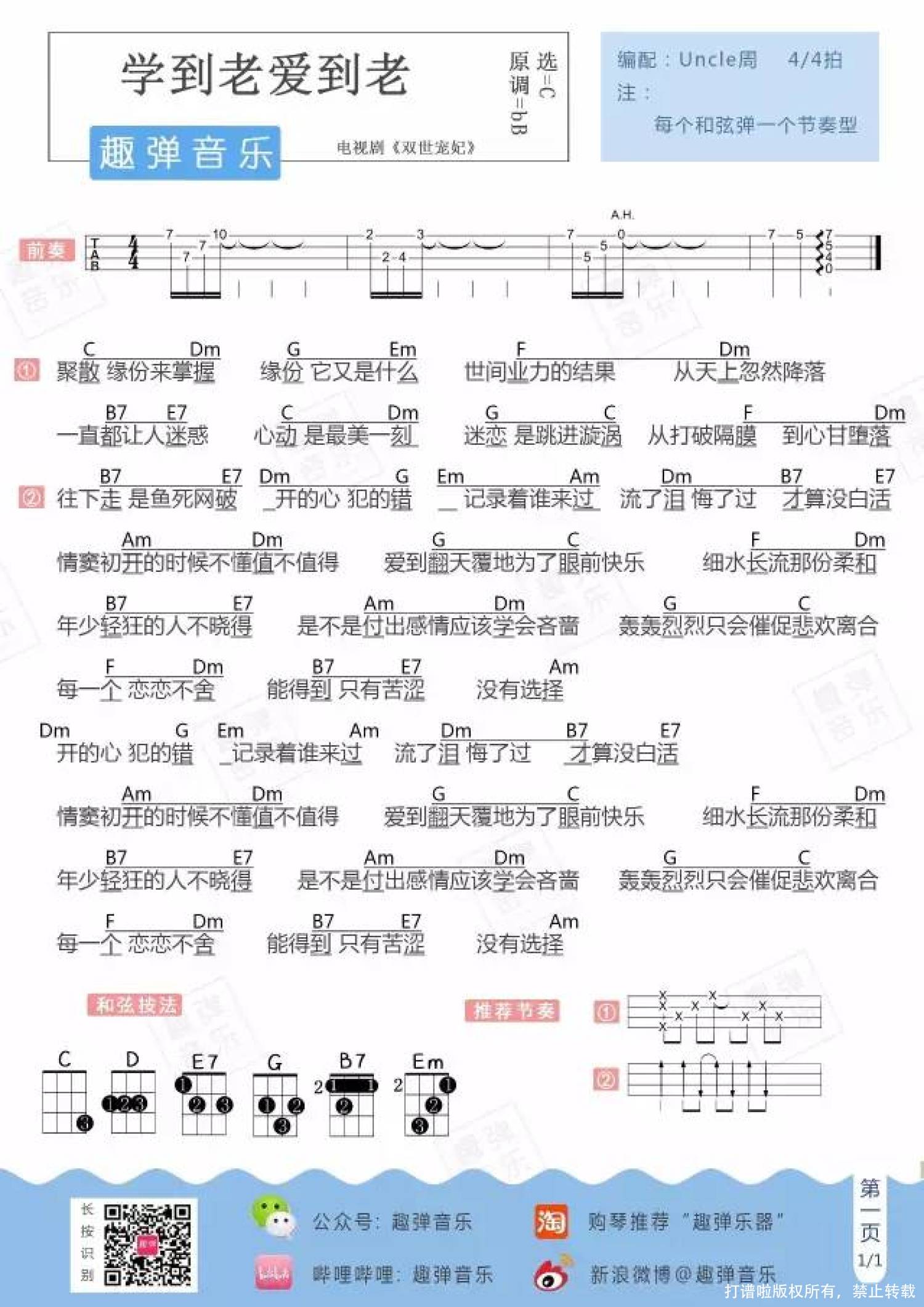 曲谱介绍: 《学到老爱到老》尤克里里曲谱