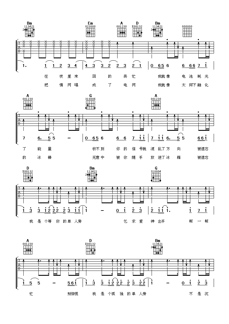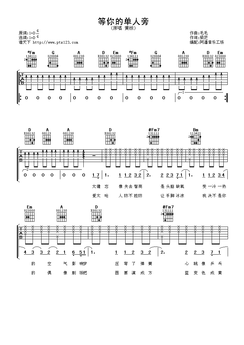 当前位置:琴谱网>吉他弹唱>等你的单人旁