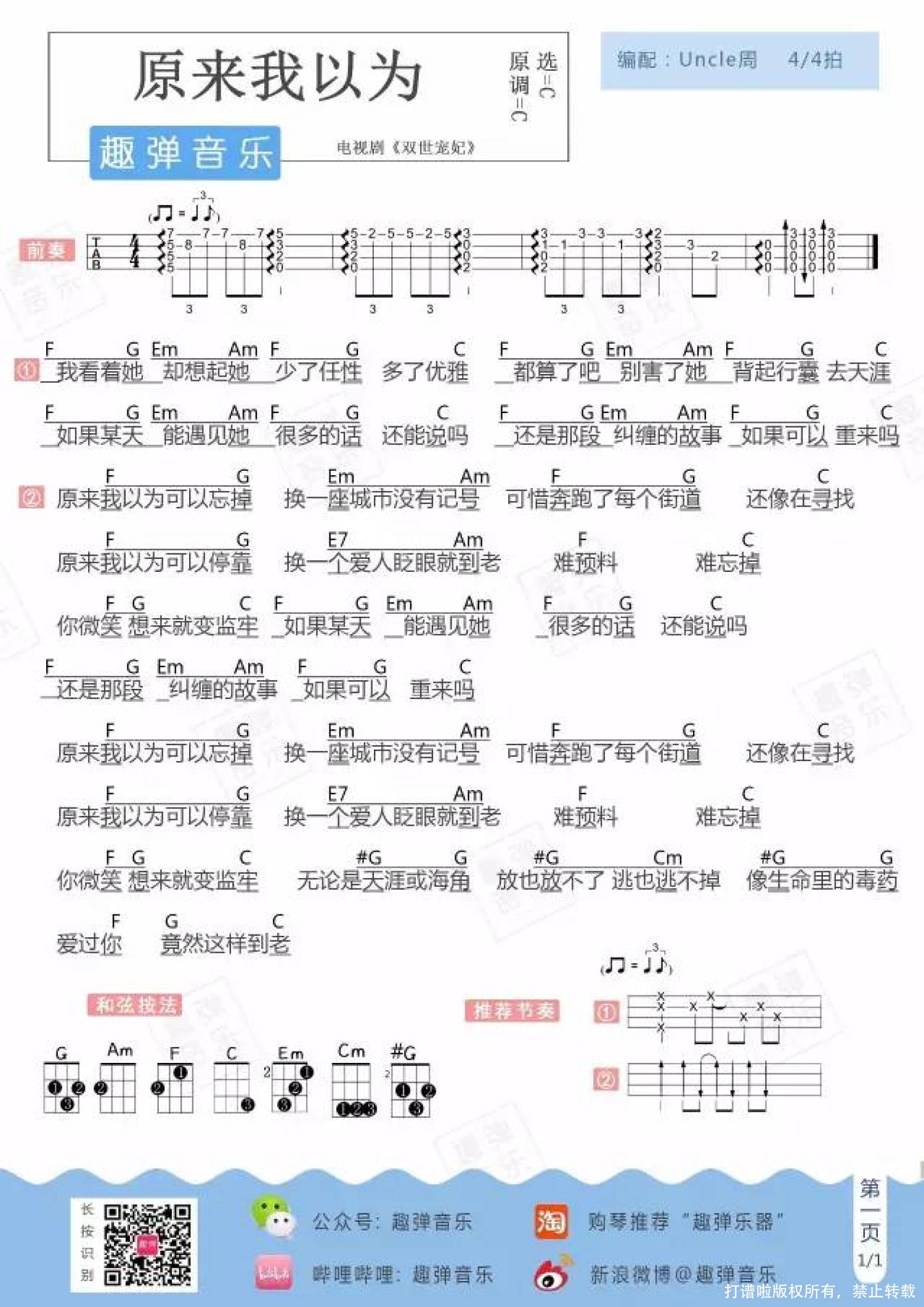 曲谱介绍: 《原来我以为》尤克里里曲谱