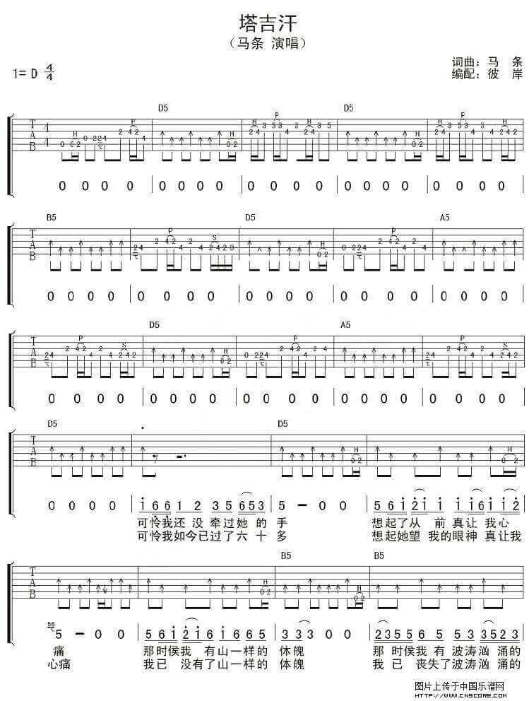 塔吉汗吉他谱 - 马条 - D调吉他弹唱谱