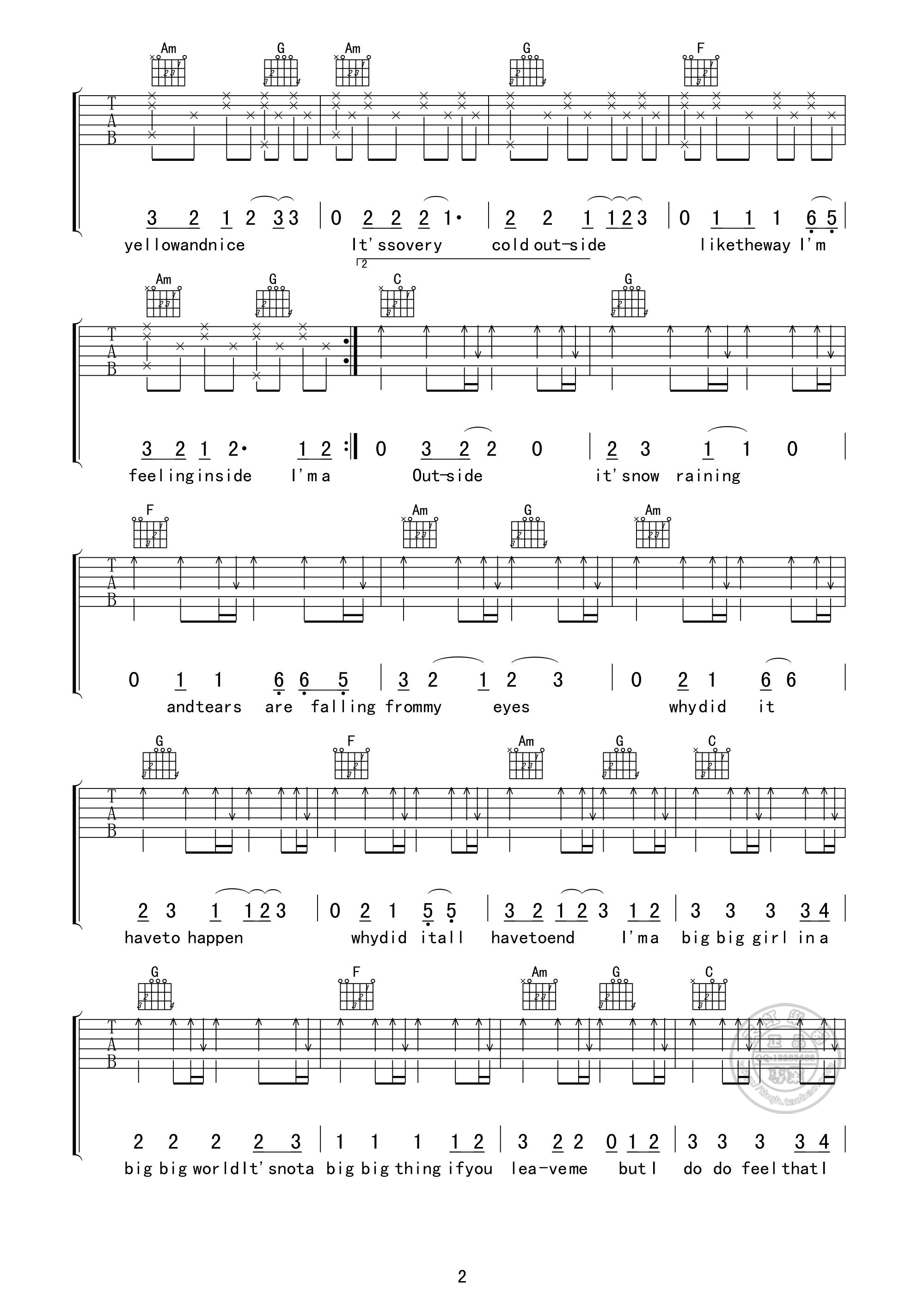 Big Big World吉他谱 - Big - C调吉他弹唱谱