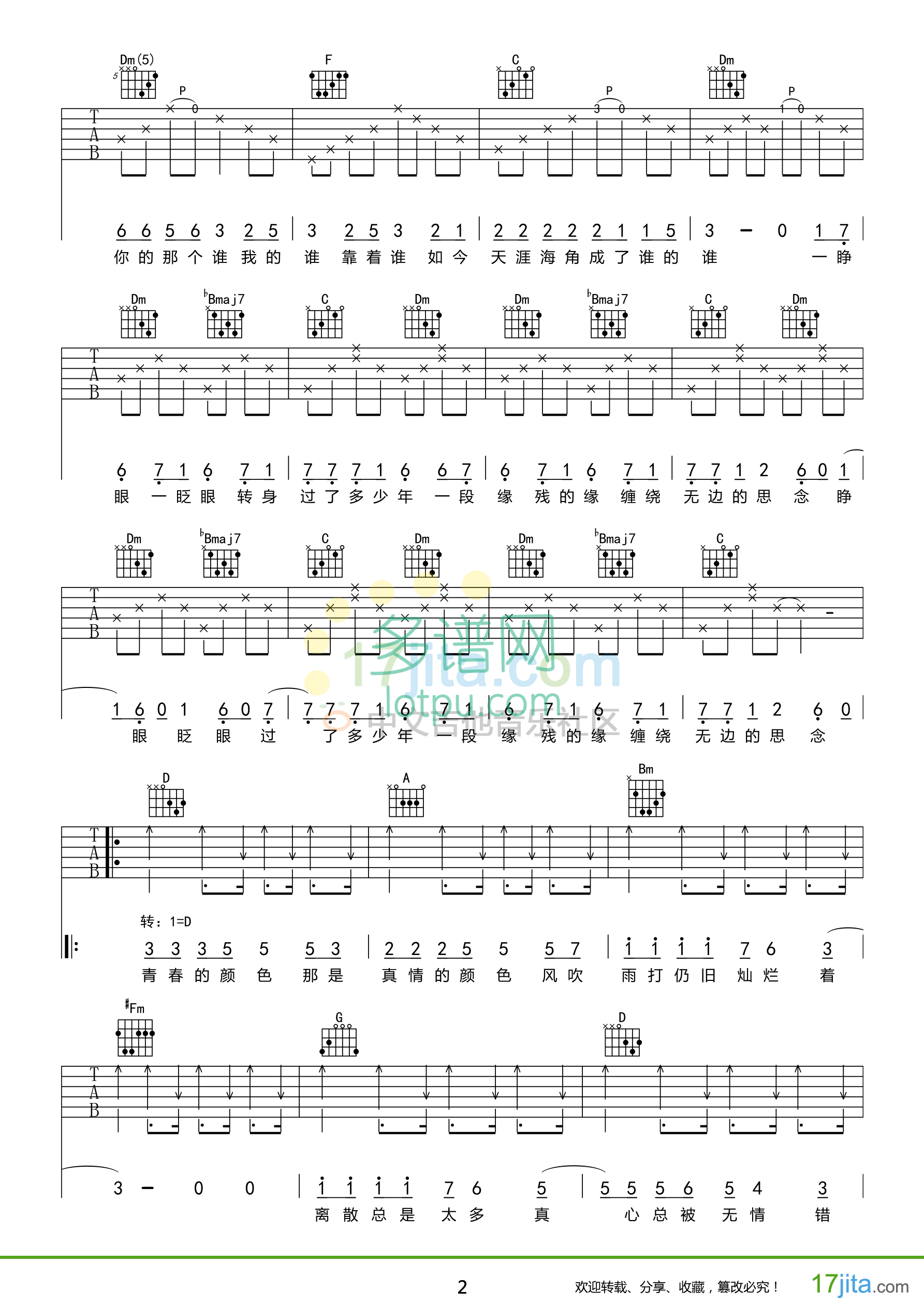 当前位置:琴谱网>吉他弹唱>青春的颜色