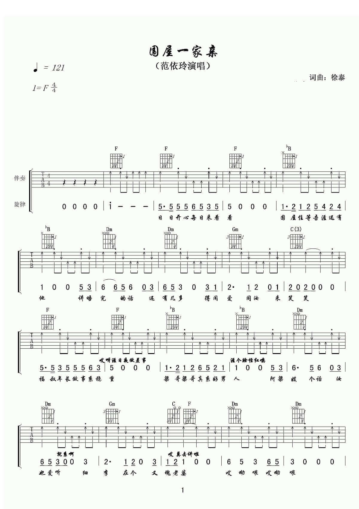 围屋一家亲吉他谱 - 范依玲 - C调吉他弹唱谱