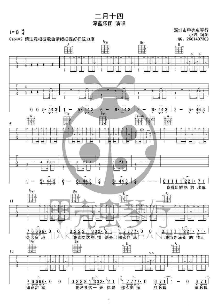 2月14吉他谱 - 深蓝乐队 - B调吉他弹唱谱