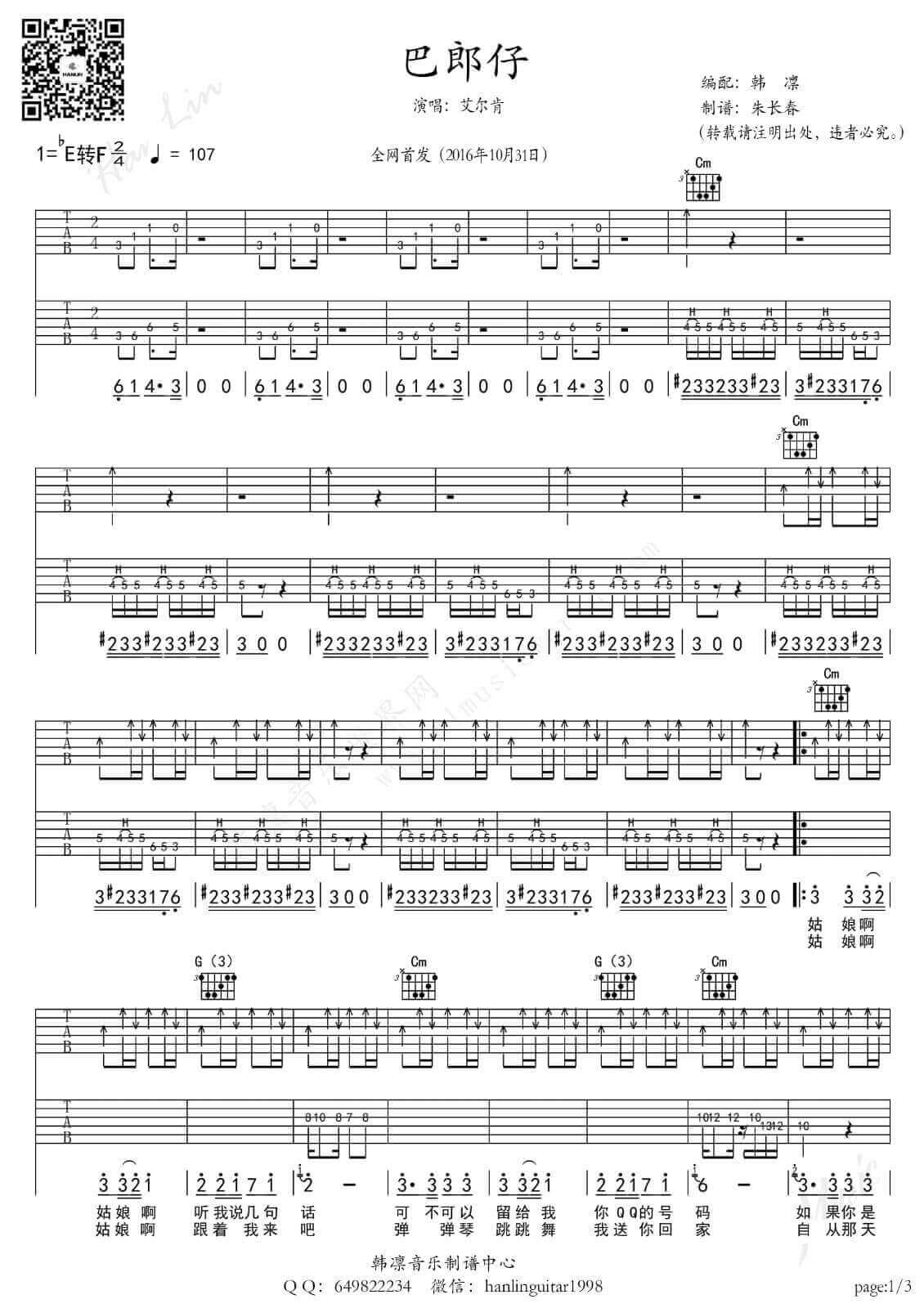 曲谱介绍: 巴郎仔吉他谱采用了F调指法,由韩凛音乐制谱中心编配完成。这是一首新疆的歌曲,歌曲的旋律欢快动人,歌手的嗓音魅力多情,让人想起了新疆人舞蹈的模样,他们的舞姿带有自己独特的区域魅力,跳出了自己的味道,他们的音乐作品也不逊色,在他们的歌曲之中,我们能够感受到快乐,会忍不住随着他的音乐律动起来,这首歌曲也表达了一段唯美的爱情故事,让人听了很是心动。另外一首,河流吉他谱吉他谱也很赞,小伙伴可以愉快的学习起来了。