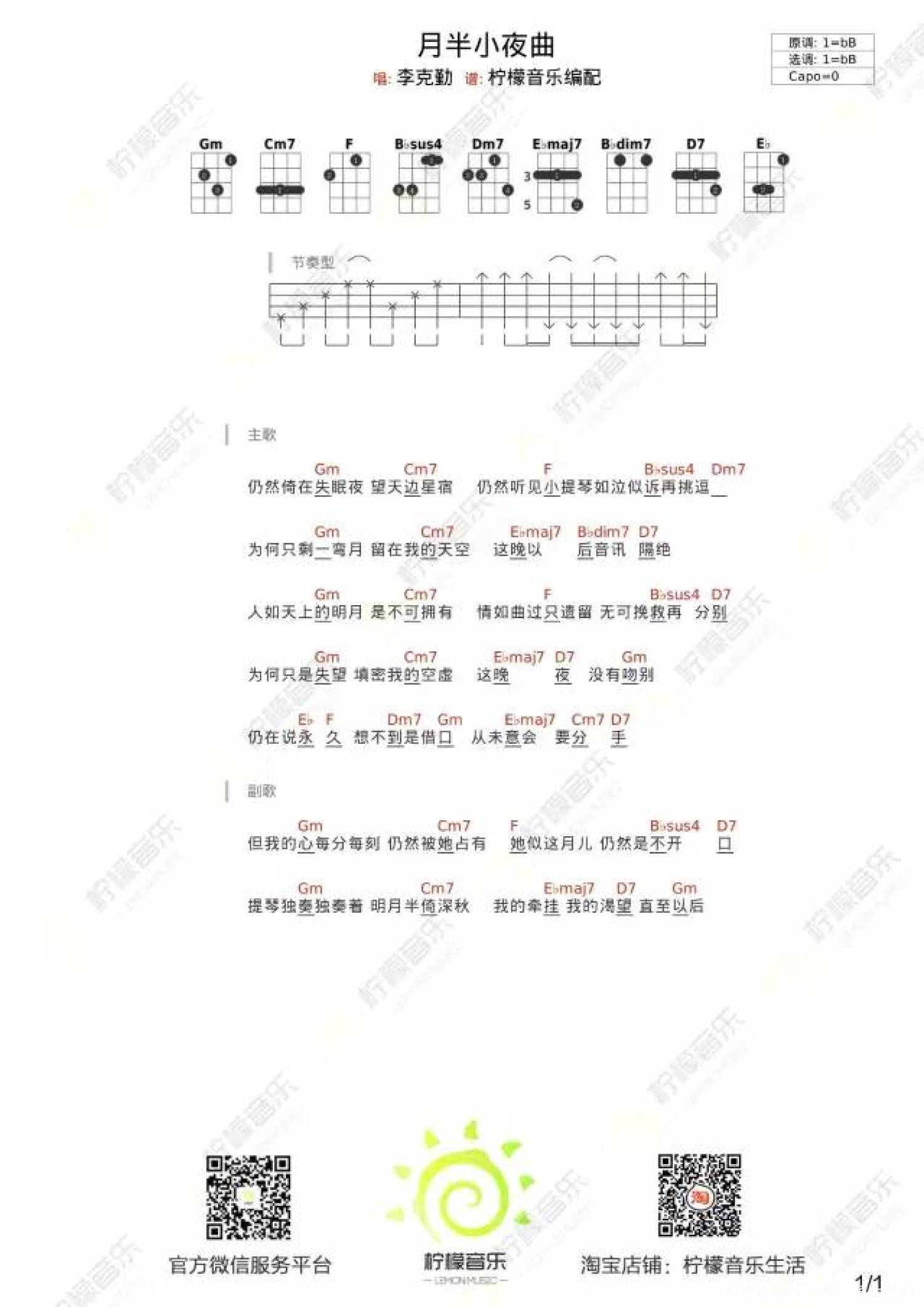 曲谱介绍: 《 月半小夜曲》尤克里里曲谱