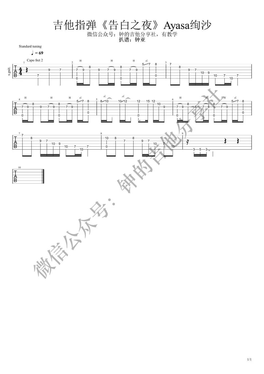 告白之夜吉他谱 - 喻言家 - 吉他独奏谱