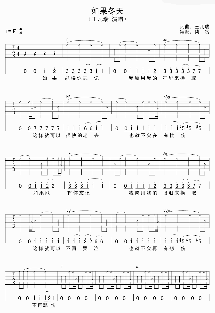 如果冬天吉他谱 - 王凡瑞 - F调吉他弹唱谱
