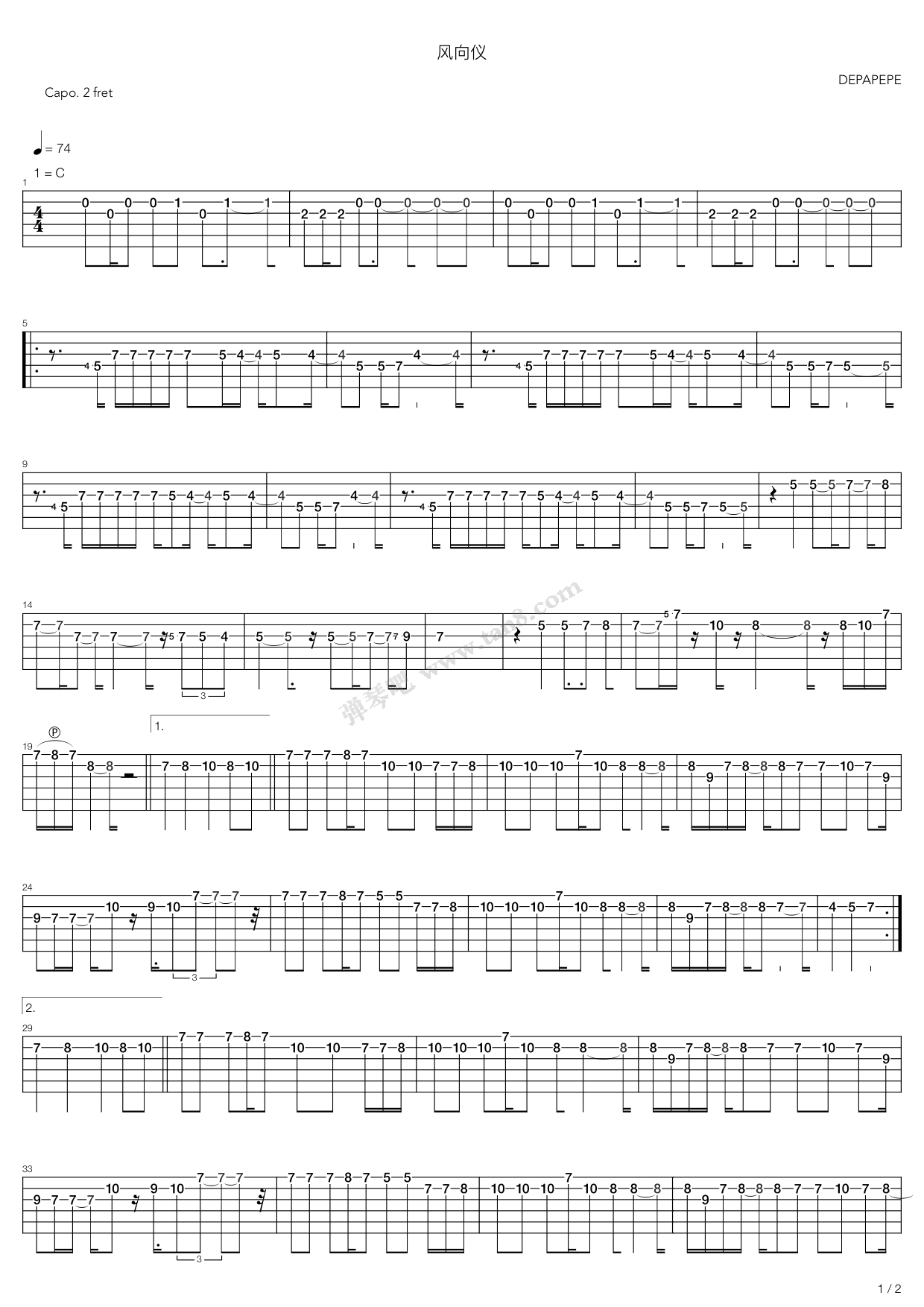 风向仪吉他谱 - depapepe - C调吉他弹唱谱