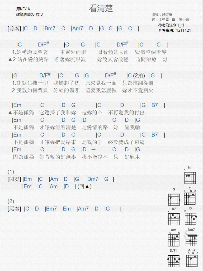 看清楚_吉他谱 - 看清楚 - 吉他弹唱谱