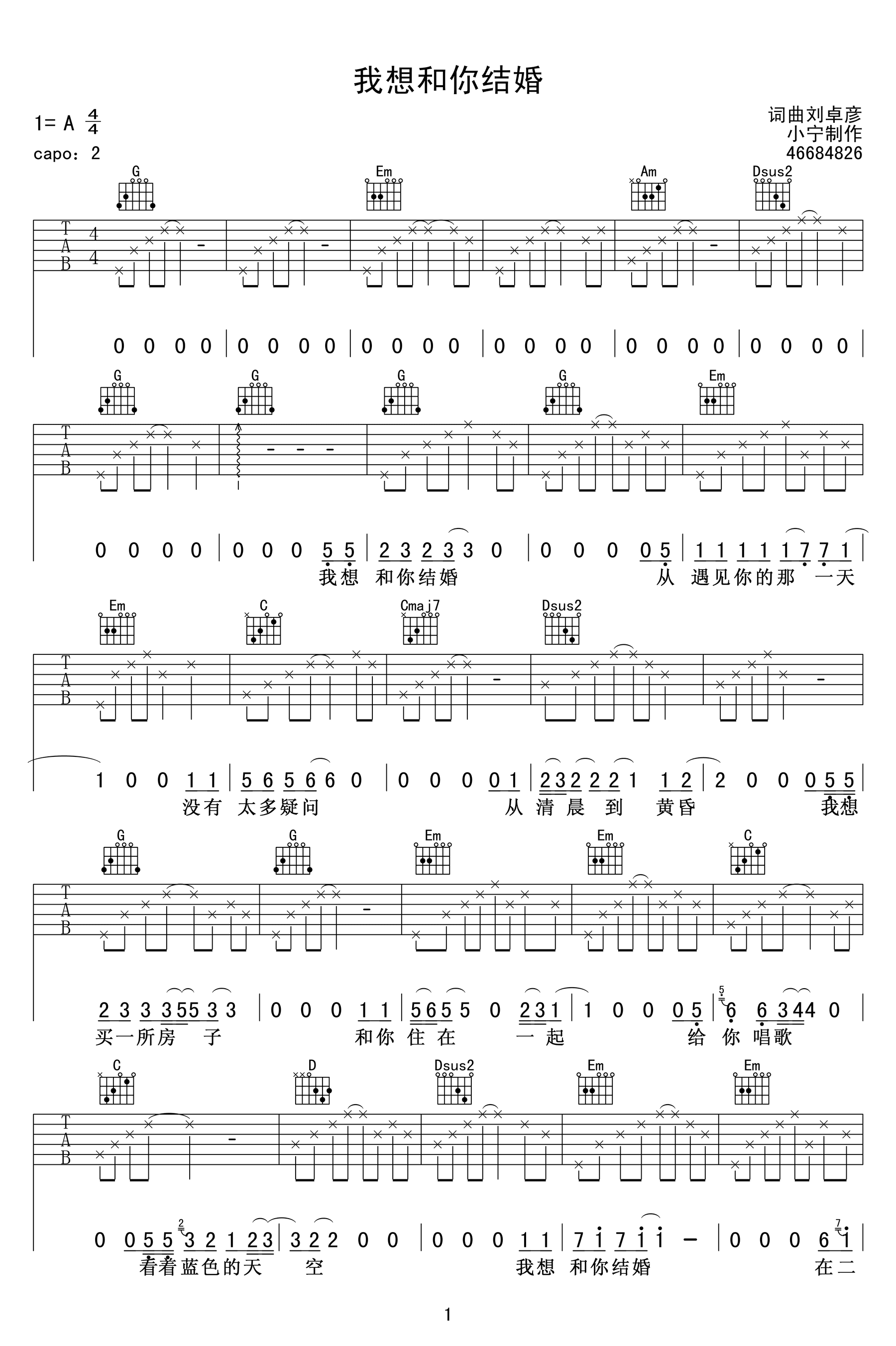 我想和你结婚吉他谱 - 刘卓彦 - A调吉他弹唱谱