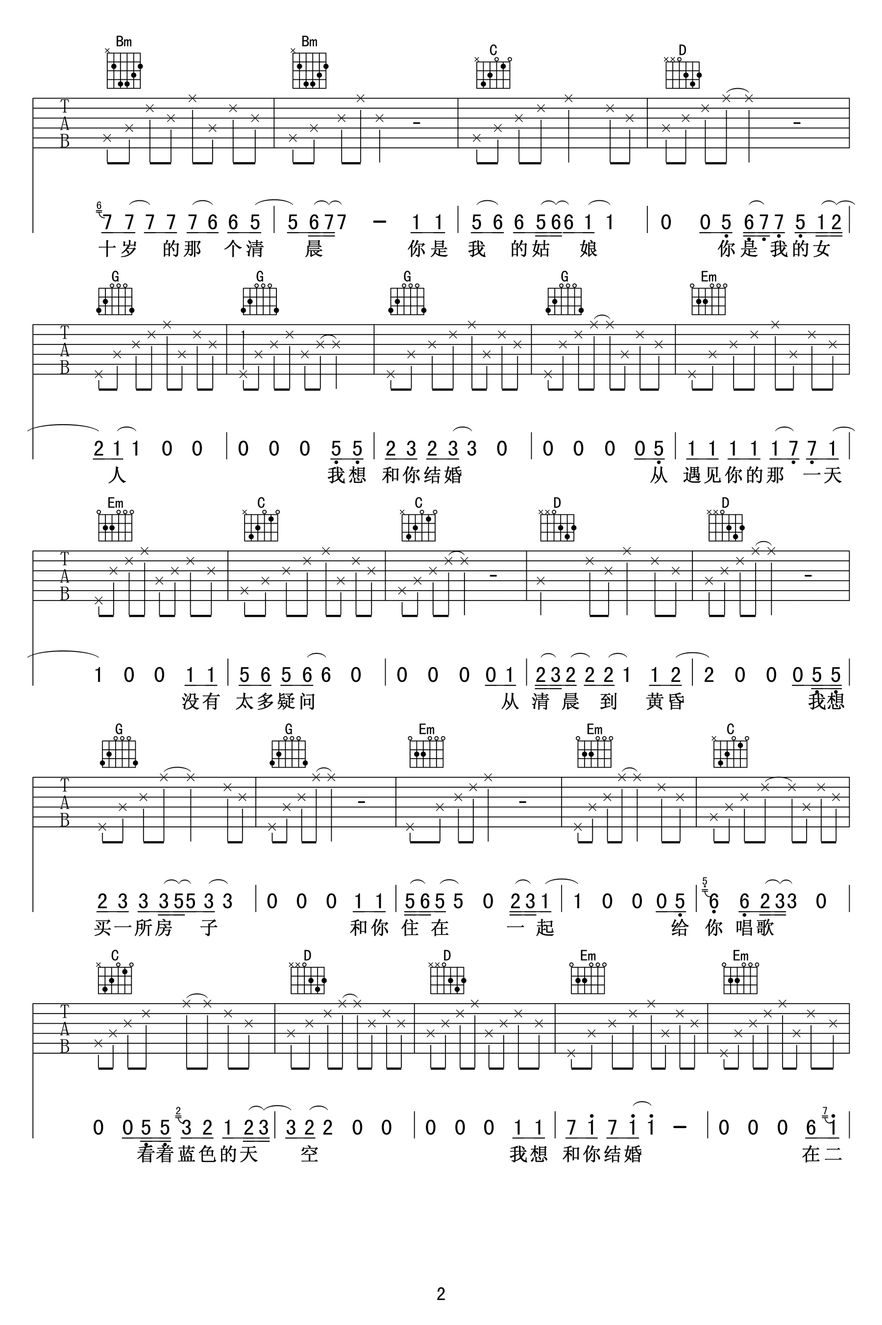 当前位置:琴谱网>吉他弹唱>我想和你结婚