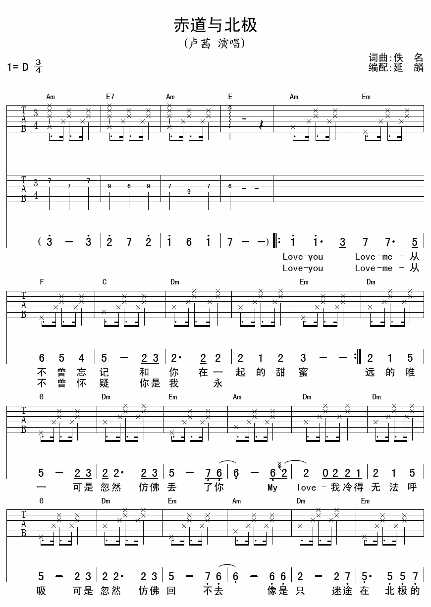 赤道与北极吉他谱 - 卢茜 - D调吉他弹唱谱