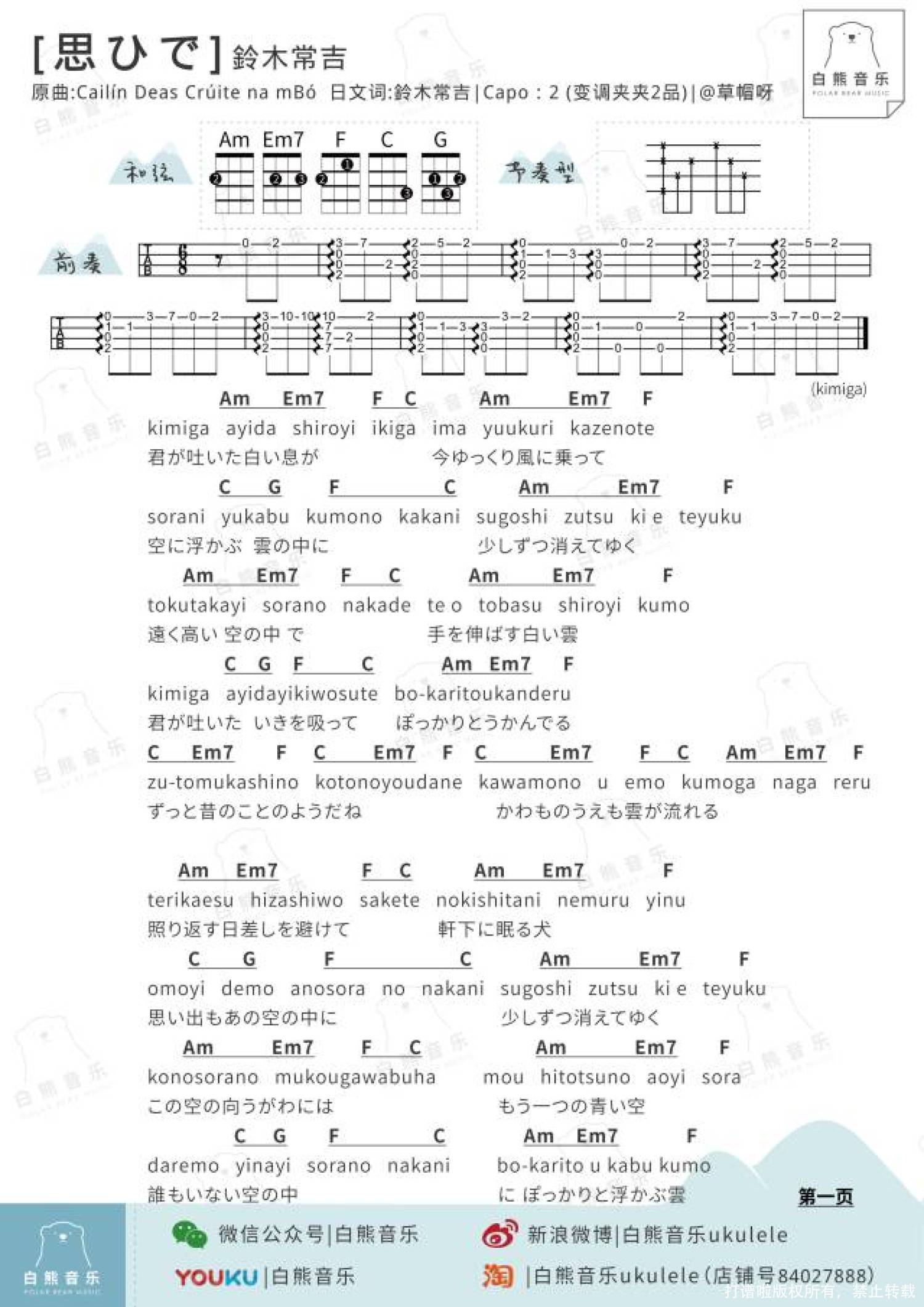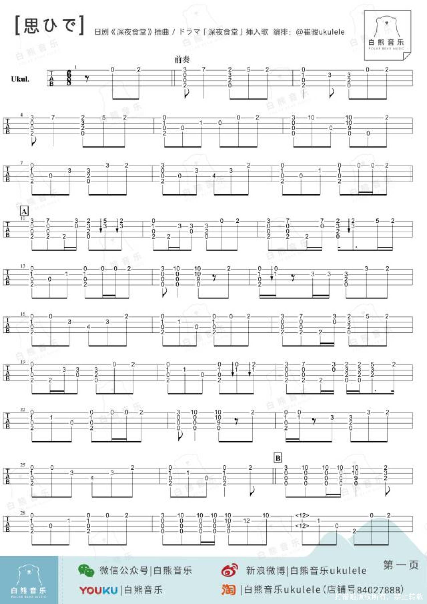 曲谱介绍: 「食物暖胃,故事暖心」 长的是深夜,短的是人生 深夜食堂片头曲〈思ひで〉 ,略有沧桑却又云淡风轻,长的是深夜,短的是人生,原编曲源自于爱尔兰民谣〈 Cailín Deas Crúite Na Mbó〉 ,原唱是爱尔兰的传统民谣乐队Altan。 "当一天结束,人们匆匆走上归家路时,我的一天才刚刚开始。营业时间从深夜12时到早上7时,人们称之为深夜食堂,你问有没有客人,其实还不少呢!" 近期上映的《深夜食堂2》延续该系列的治愈系风格,上演着美食诱惑和一个又一个普通但耐人寻味的故事。午夜12点“深夜食堂”开始营业,老板(小林薰饰)沉默可亲、厨艺精湛。 长夜漫漫,当一日的忙碌结束,喧嚣散去,满身疲惫的人儿,有些脆弱的心灵总需要得到安抚;而这间充满人情味的小店,便成为大家觅食聚会、憩息畅谈的避风港。 心情低落时就会穿“丧服”减压的赤冢范子(河井青叶 饰)接连遭遇了工作和感情双重打击; 高木清太(池松壮亮饰)爱上比自己大十几岁的女人而与母亲发生冲突; 老太太小川夕起子(渡边美佐子饰)始终无法走出抛夫弃子的阴影,在第一部中受食堂老板恩惠的小满(多部未华子饰)收留老太太却不被理解,警察小暮(小田切让饰)一如既往地维护着街区的平静……他们将如何解开心结,走出困境,“深夜食堂”在灯火阑珊中见证着一切。 美食是最治愈的,难过与悲伤的时候,一碗美食下肚,暖的不只是胃还有受伤的心;常言道人生百味,生活总不会如童话故事般美好,但是知其乐,忘其苦,干了这一碗人间烟火,尝酸甜苦辣的人生。 小林薰曾坦言自己是相信深夜食堂这样的存在的:"我自己就曾在失意时受到过像深夜食堂一样的治愈,可能有些人现在还没有遇到这样的地方,但只要我们心中一直相信,就一定会在合适的时候遇到。"   指弹视频演示 指弹视频教学 尤克里里曲谱 指 弹 曲 谱 弹 唱 歌 谱(更正)