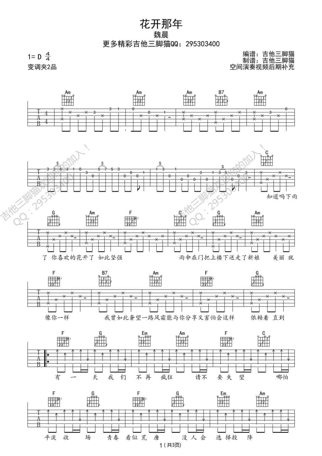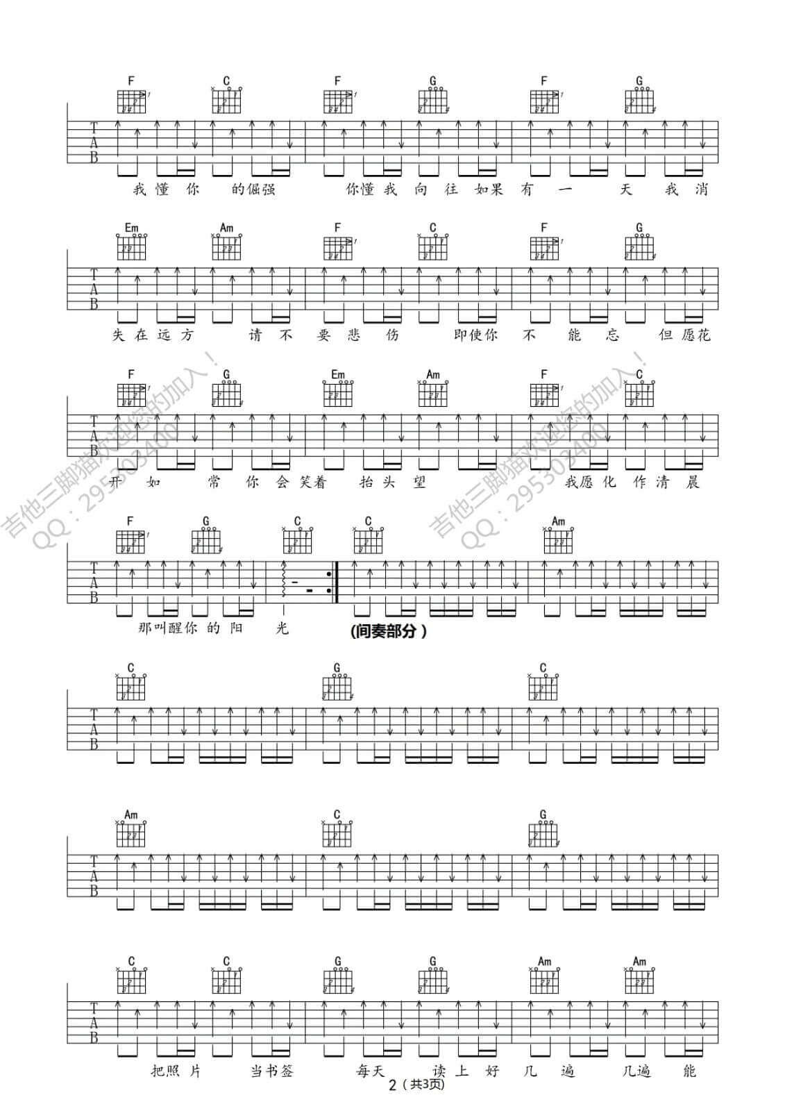 吉他弹唱D调来源:吉他三脚猫230 浏览2024-02-03 13:53发布图谱共3页