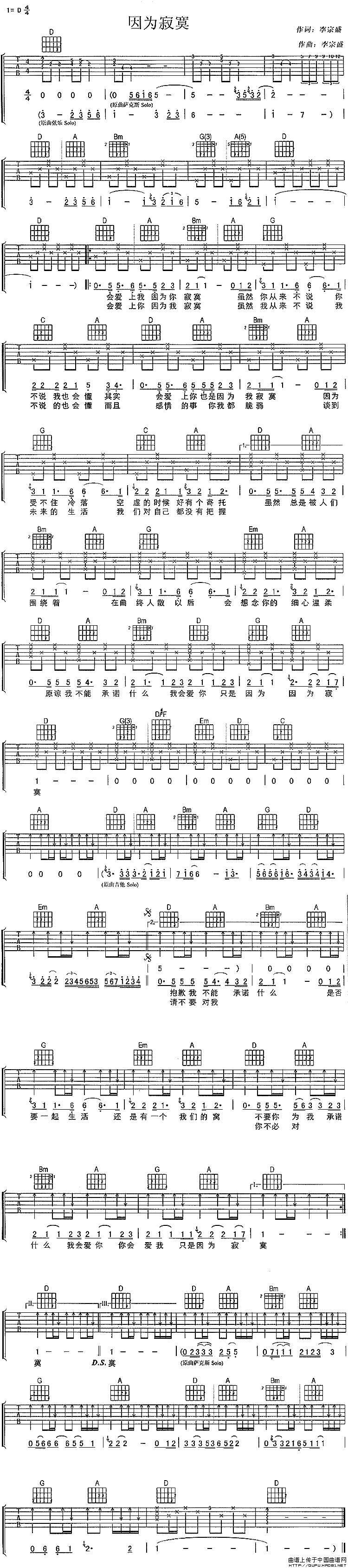 因为寂寞吉他谱 - 李宗盛 - D调吉他弹唱谱