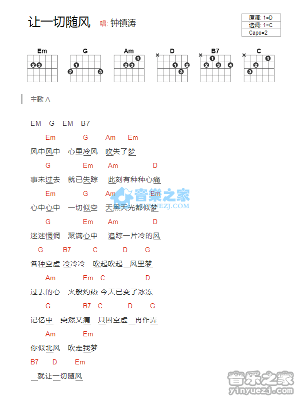 让一切随风吉他谱 - 钟镇涛 - C调吉他弹唱谱