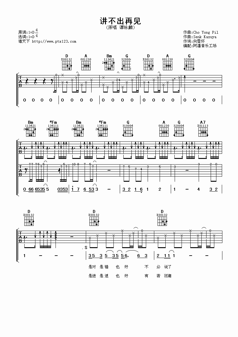 当前位置:琴谱网>吉他弹唱>讲不出再见