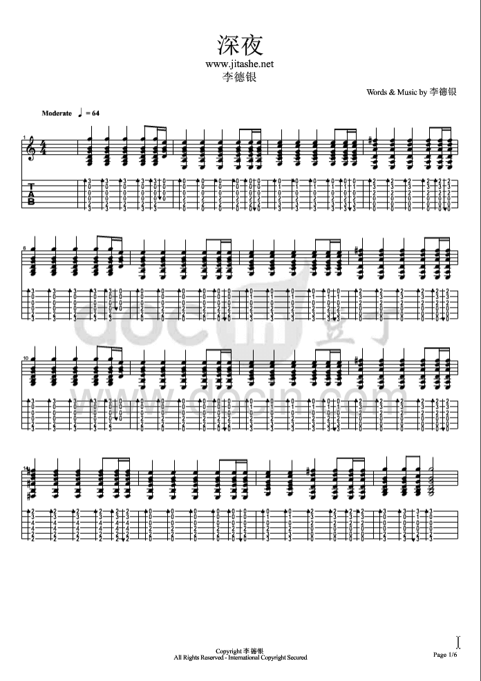曲谱介绍: 深夜吉他谱由豆丁编配完成。另外一首,滴答吉他谱也很赞,小伙伴可以愉快的学习起来了。