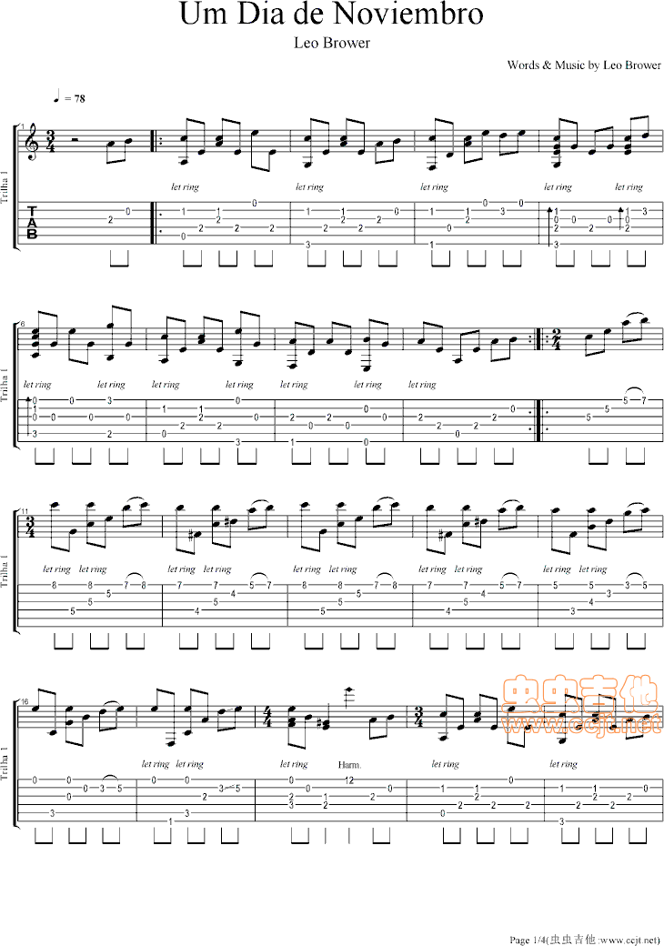 当前位置:琴谱网>吉他独奏>十一月的某一天