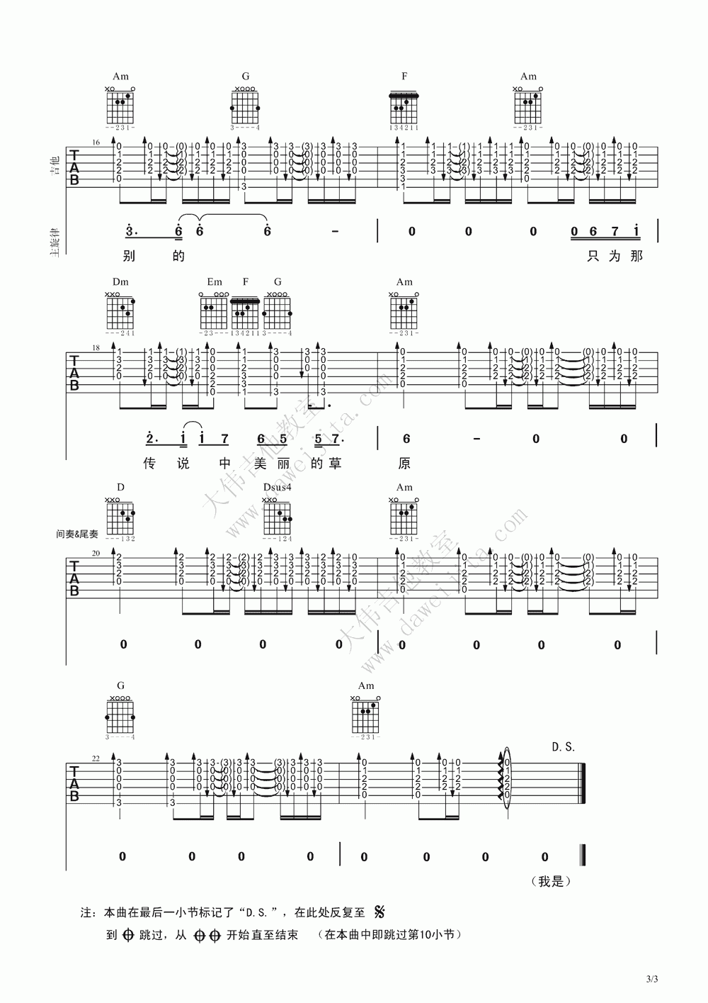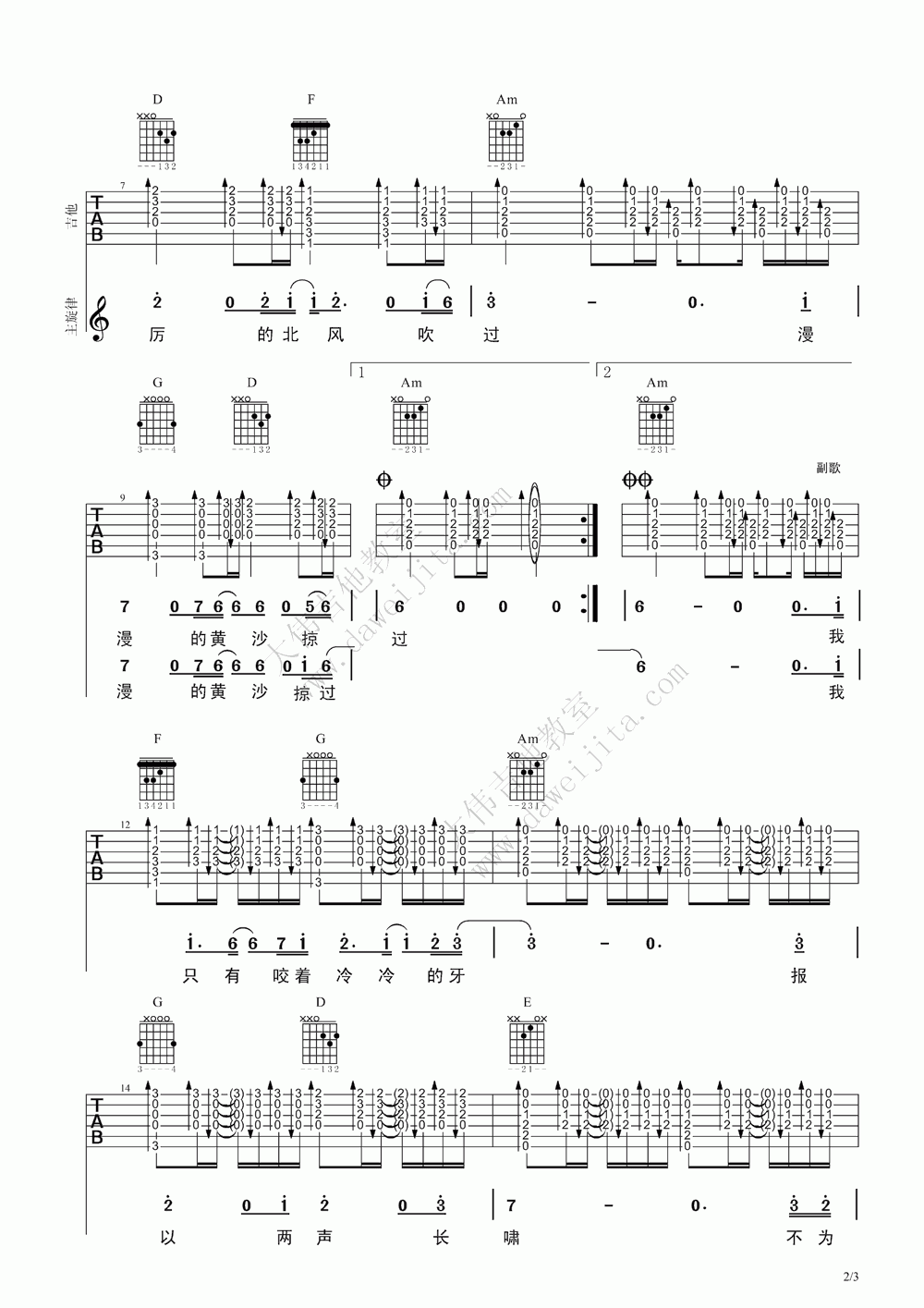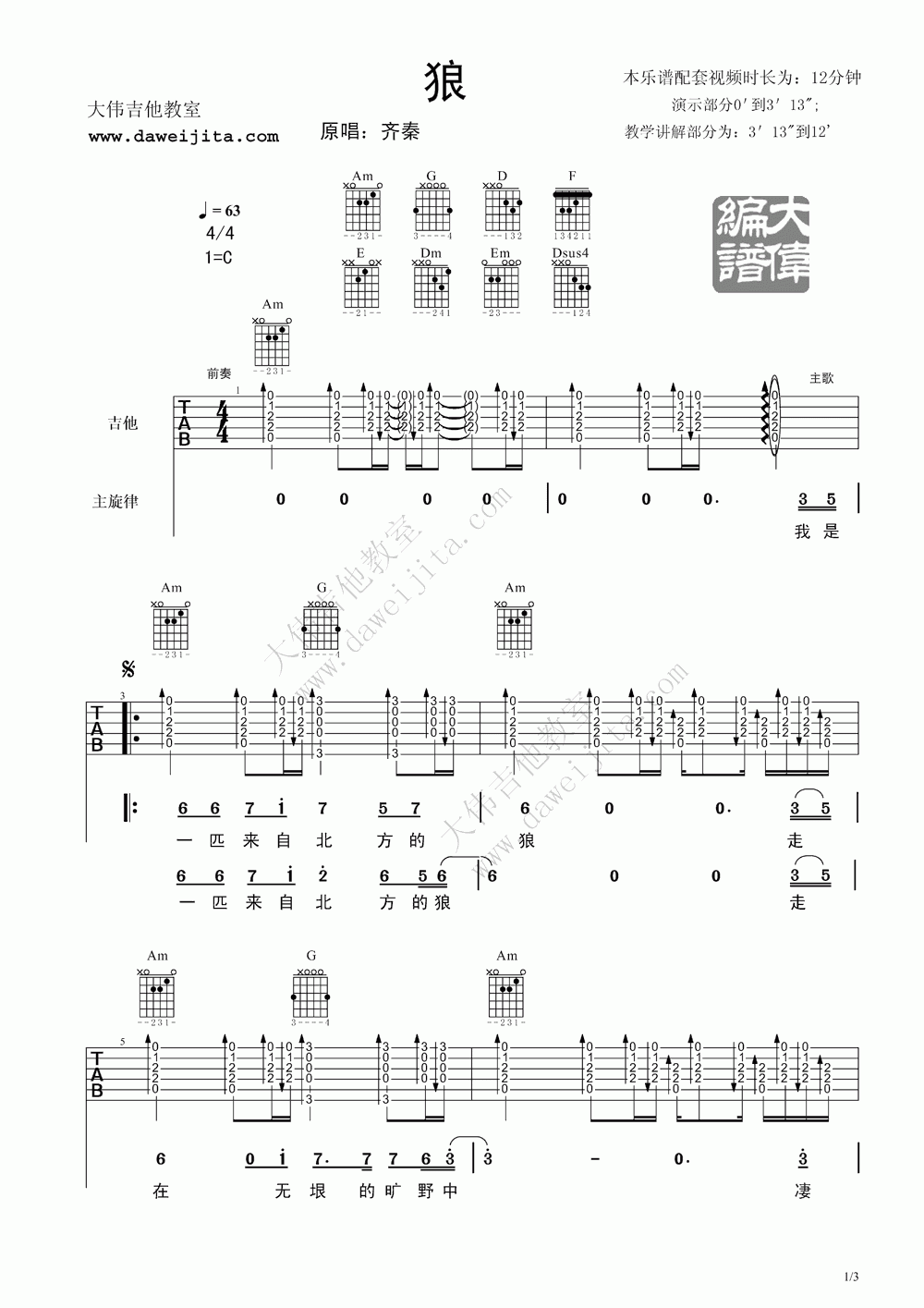 曲谱介绍: 齐秦《狼》吉他弹唱谱,采用C调指法编配,共有3张高清图谱。