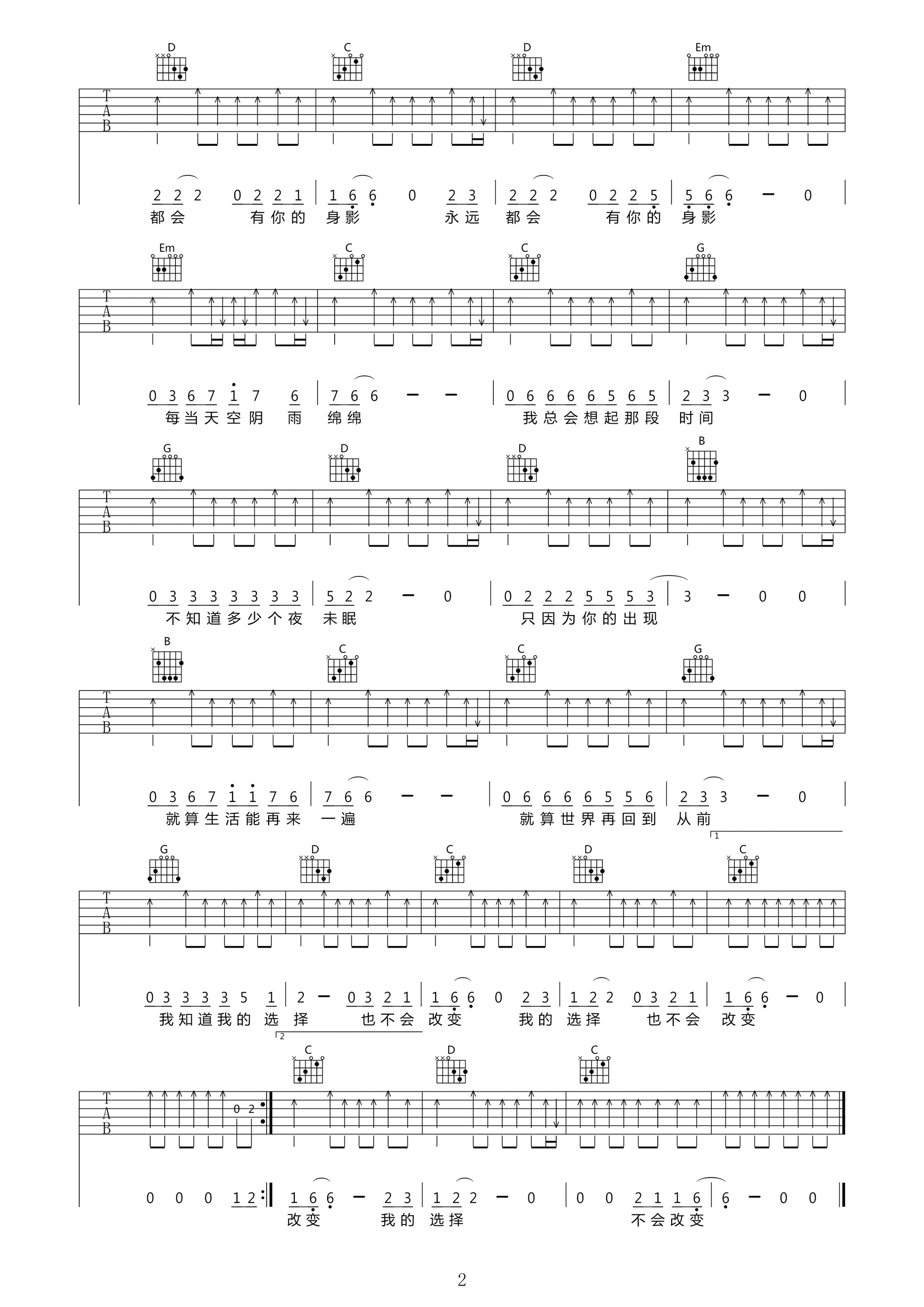 当前位置:琴谱网>吉他弹唱>不会改变