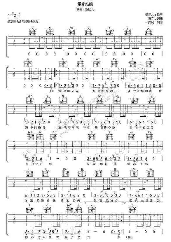 梁家姑娘吉他谱 - 烟把儿乐队 - C调吉他弹唱谱