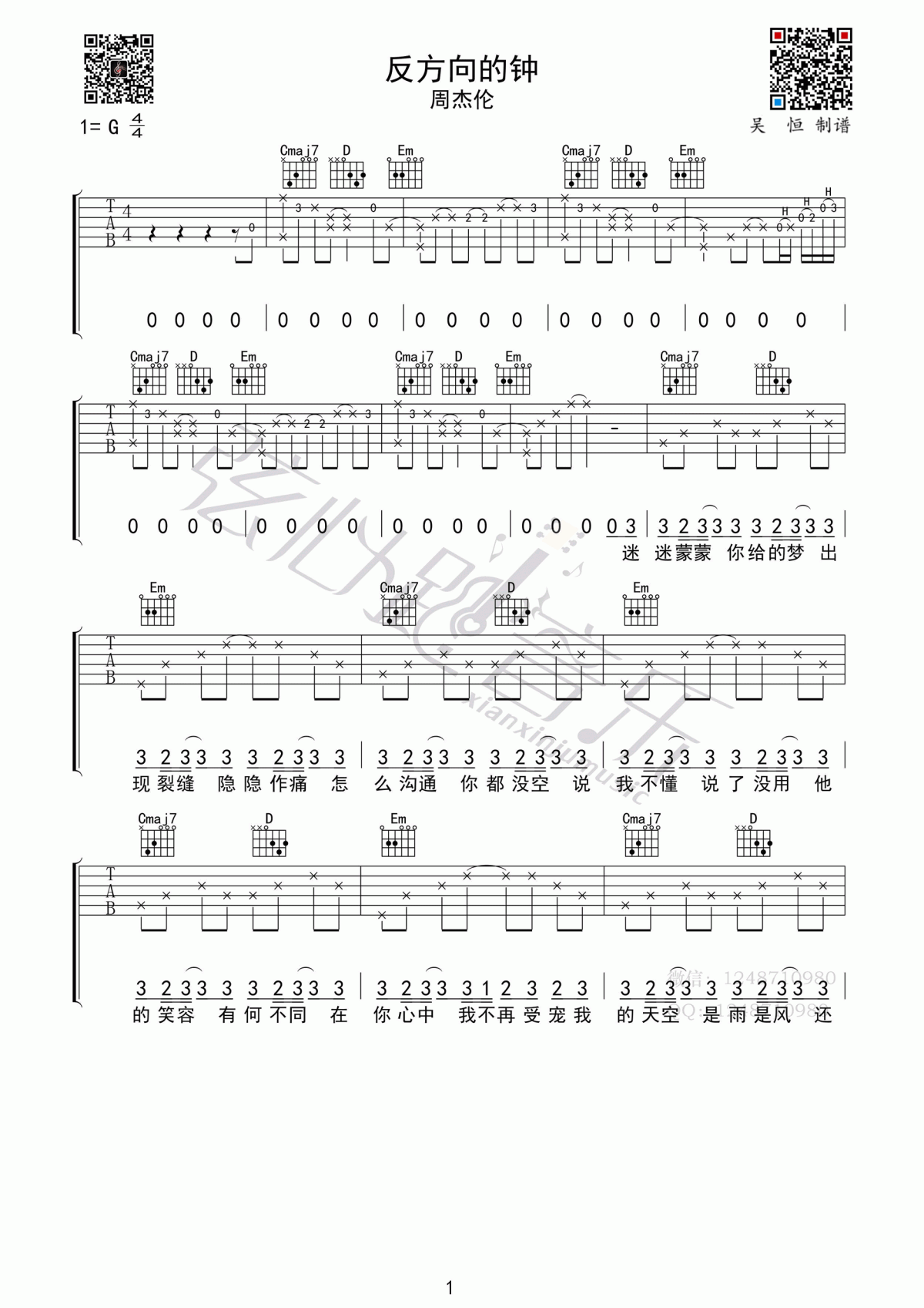 反方向的钟_吉他谱 - 反方向的钟 - 吉他弹唱谱