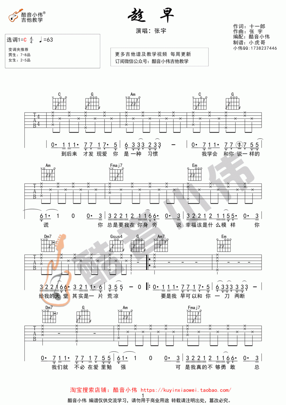 曲谱介绍: 趁早《趁早_C调简单版》吉他弹唱谱,采用C调指法编配,共有3张高清图谱。