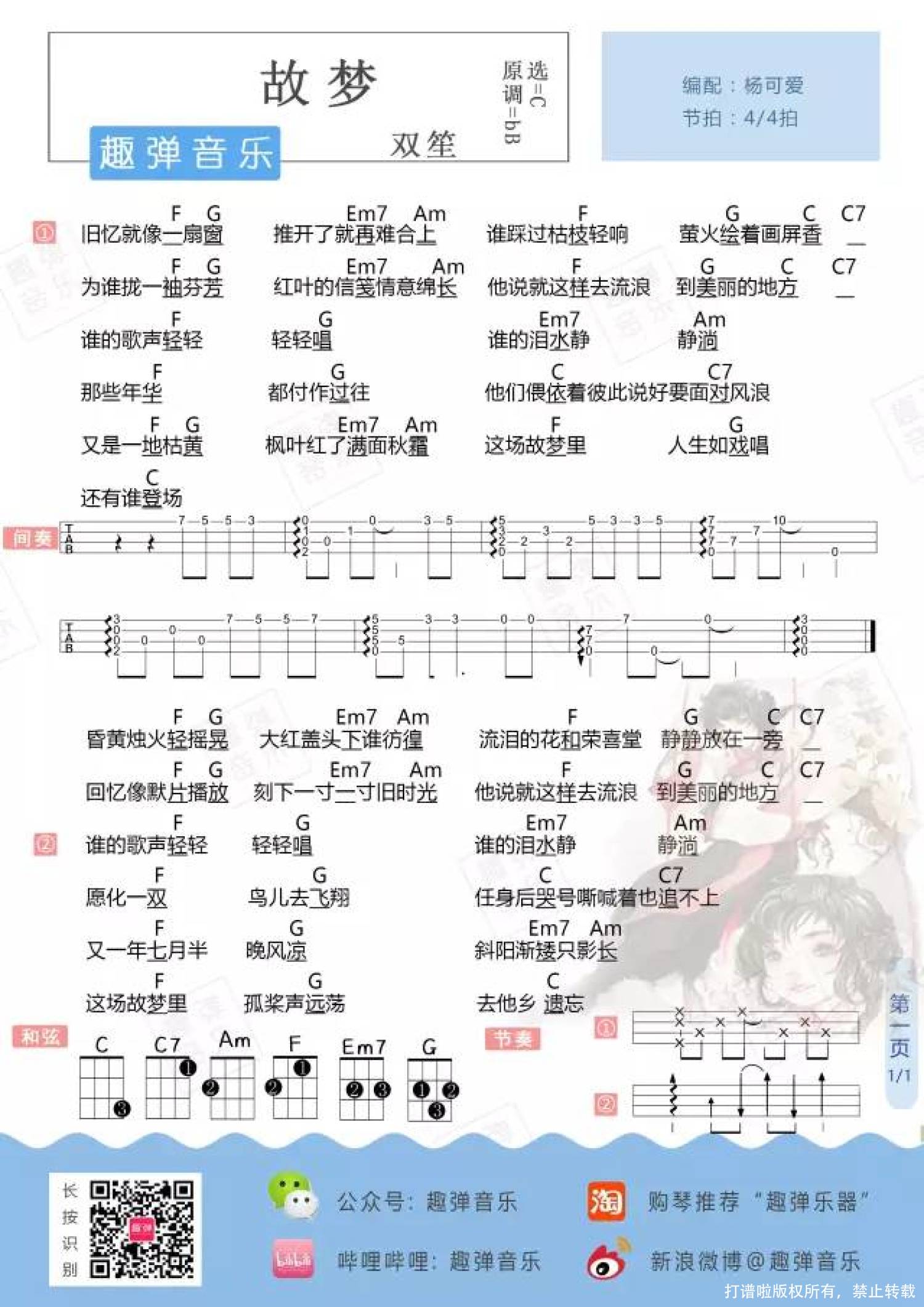 故梦尤克里里谱
