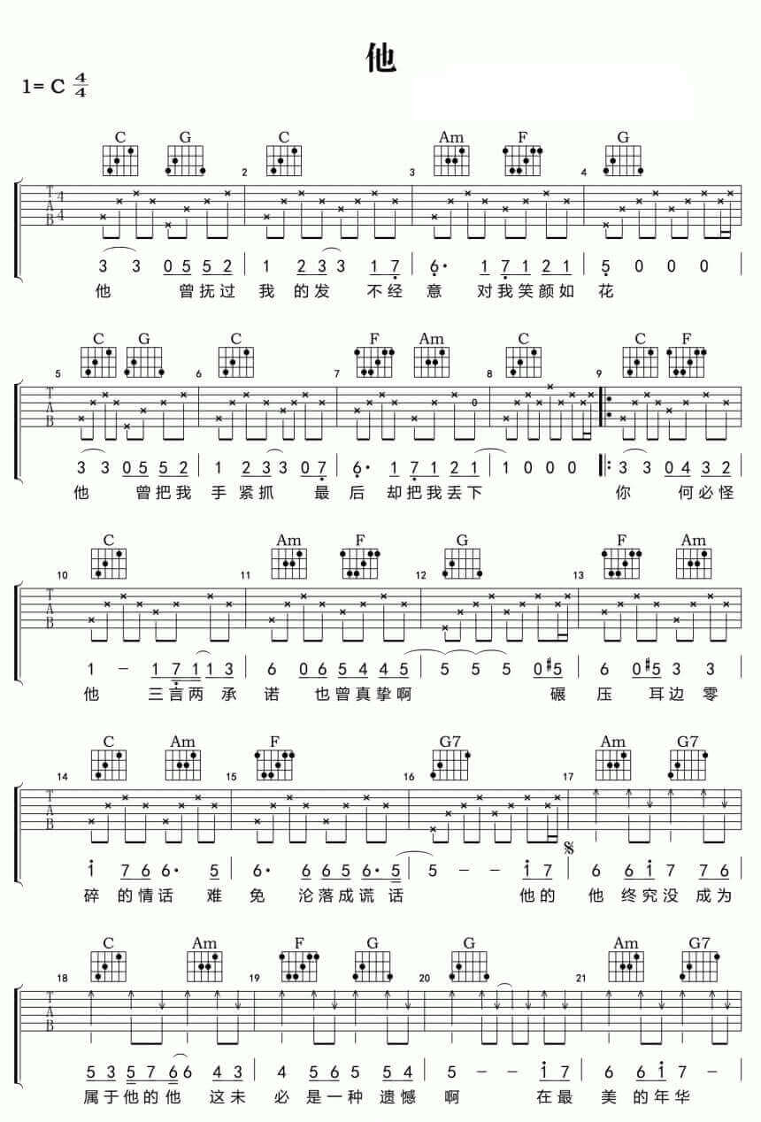 当前位置:琴谱网>吉他弹唱>他