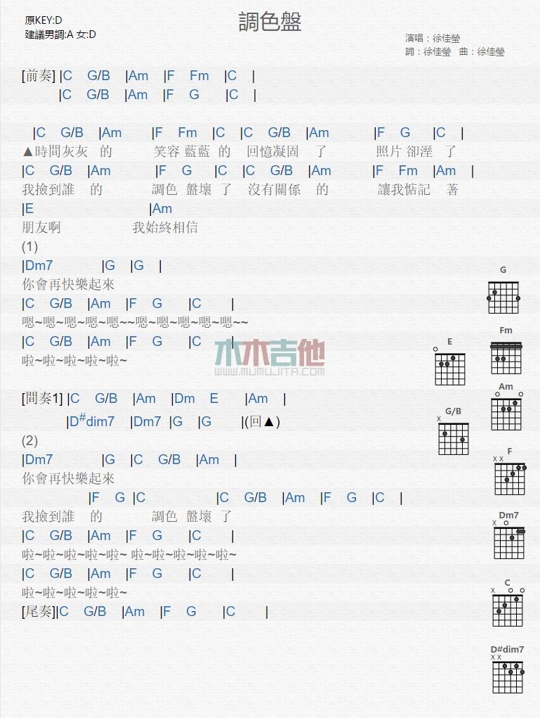 调色盘_吉他谱 - 徐佳莹 - 吉他弹唱谱